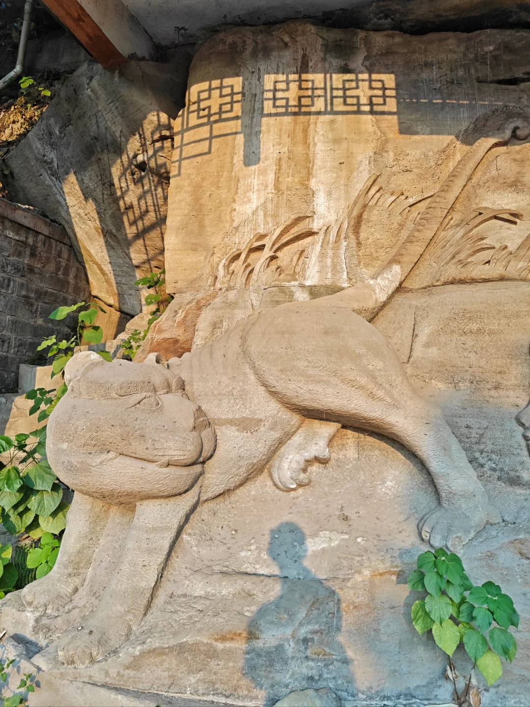 那个陡坡旁边,有一座养老院,侨发老年公寓,这个养老院依山而建,脚下是一片岩壁,隐藏在这岩壁下的,就是江北区文物保护单位:盘溪石虎。