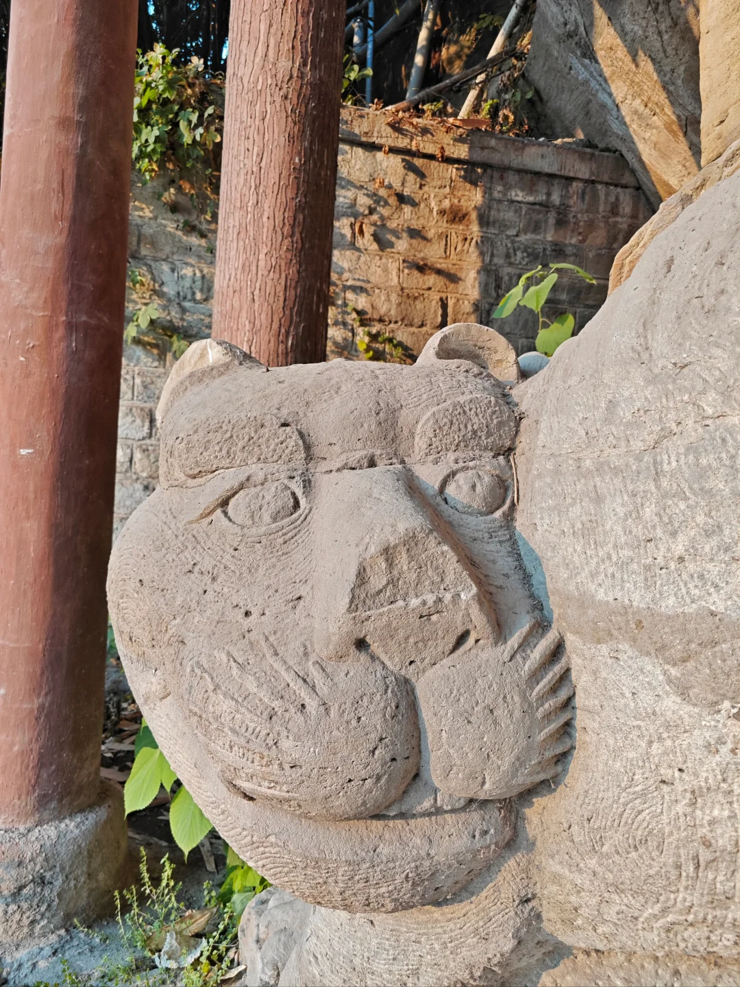 在盘溪石虎附近不到一千米的地方,有国家级文物东汉无铭阙,典型的汉代古朴简约大方风格,而这个石虎也是这种风格,所以一开始我直接以为这是东汉文物,还这样告诉别人,结果后来一翻书,发现这是1930年代石荣廷请工匠雕刻的,是现代文物,真是丢人丢大了。