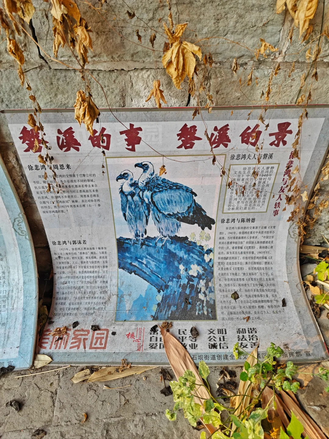 陪都时期美术大师徐悲鸿在石家花园住了好几年,他时常到盘溪石虎这里看着奔流而下的盘龙溪,然后坐船渡江到对岸沙坪坝的国立中央大学(重大A区)上课,看着底层民众每天到江边取水再努力爬坡上坎背回家,感叹于重庆人民的精神,他创作了名作:巴人汲水图。(奔马图也是同时期的创作。不是八骏图,也不是千里江山图!那是电影唐伯虎点秋香里面的,别搞混了)