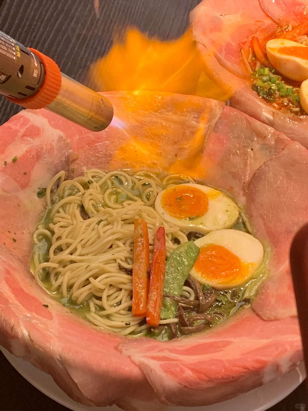 日式叉烧拉面😋😋😋围满一圈叉烧肉 叉烧用枪炙烤后喷香!