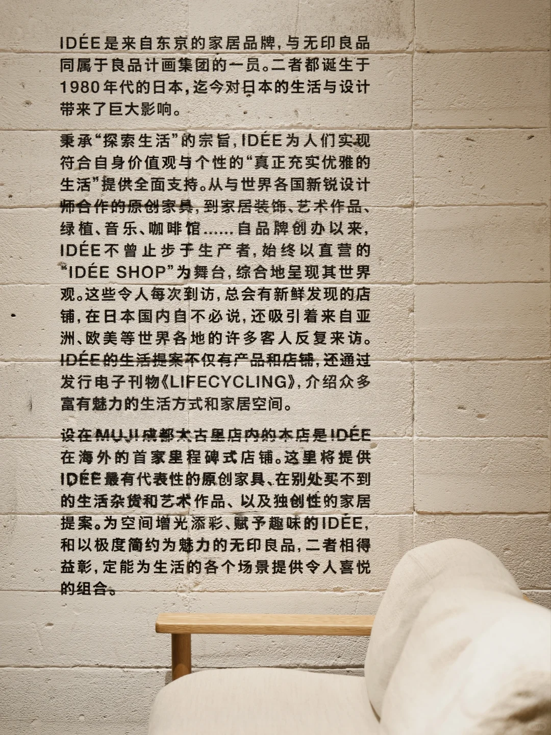 今年MUJI成都太古里世界级旗舰店已经开业的第10个年头啦,MUJI也通过在成都的商业实践与本地文化融合,影响和改变了成都人的生活方式。现在MUJI也不仅仅是一个品牌,更是一种生活美学~
