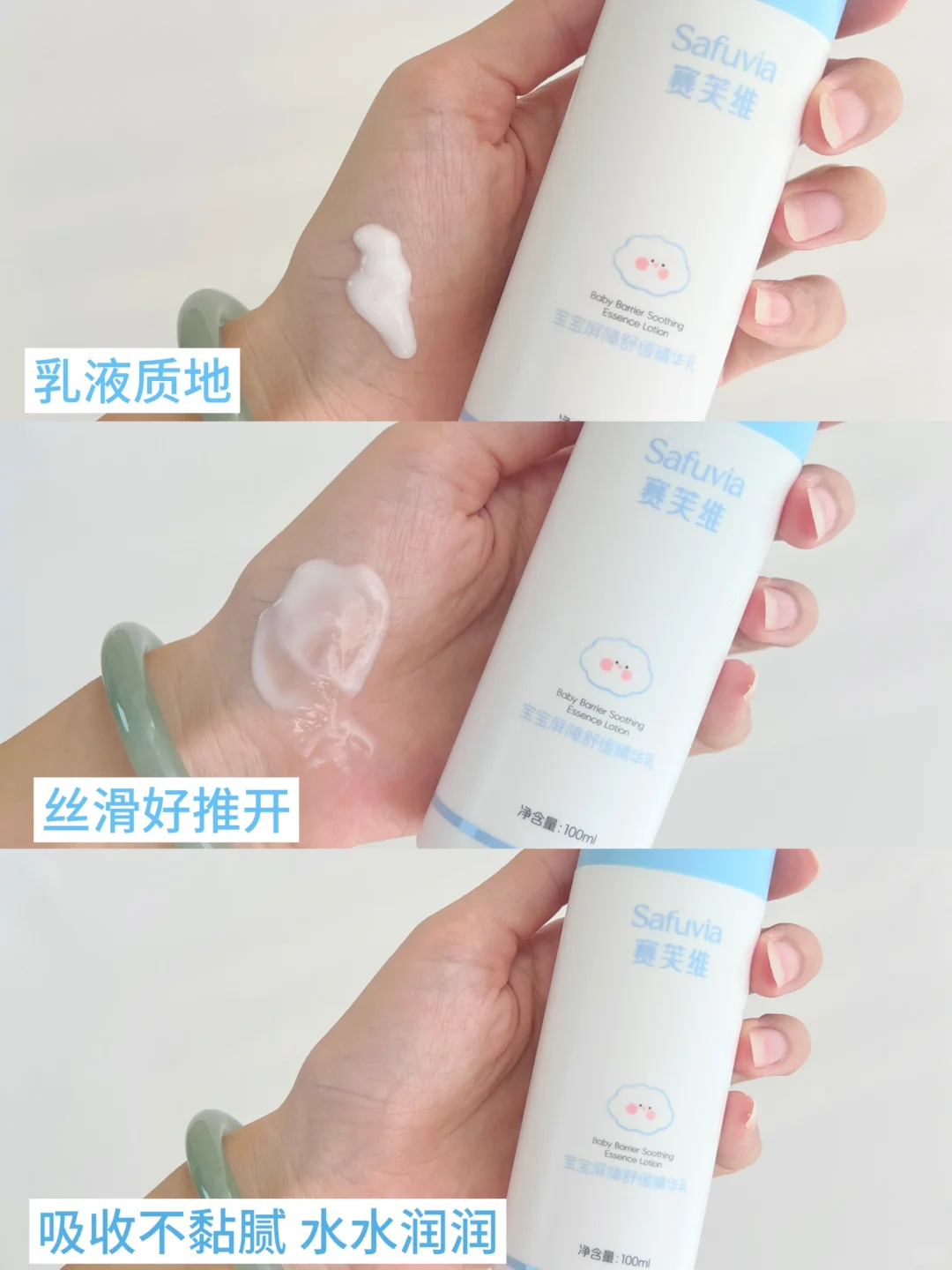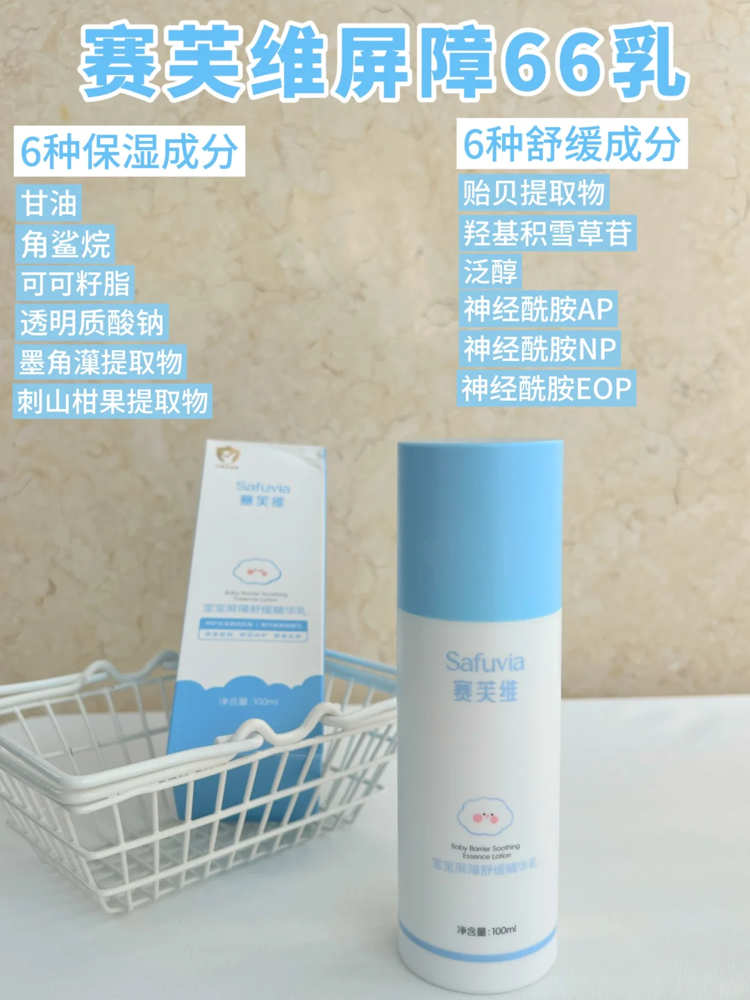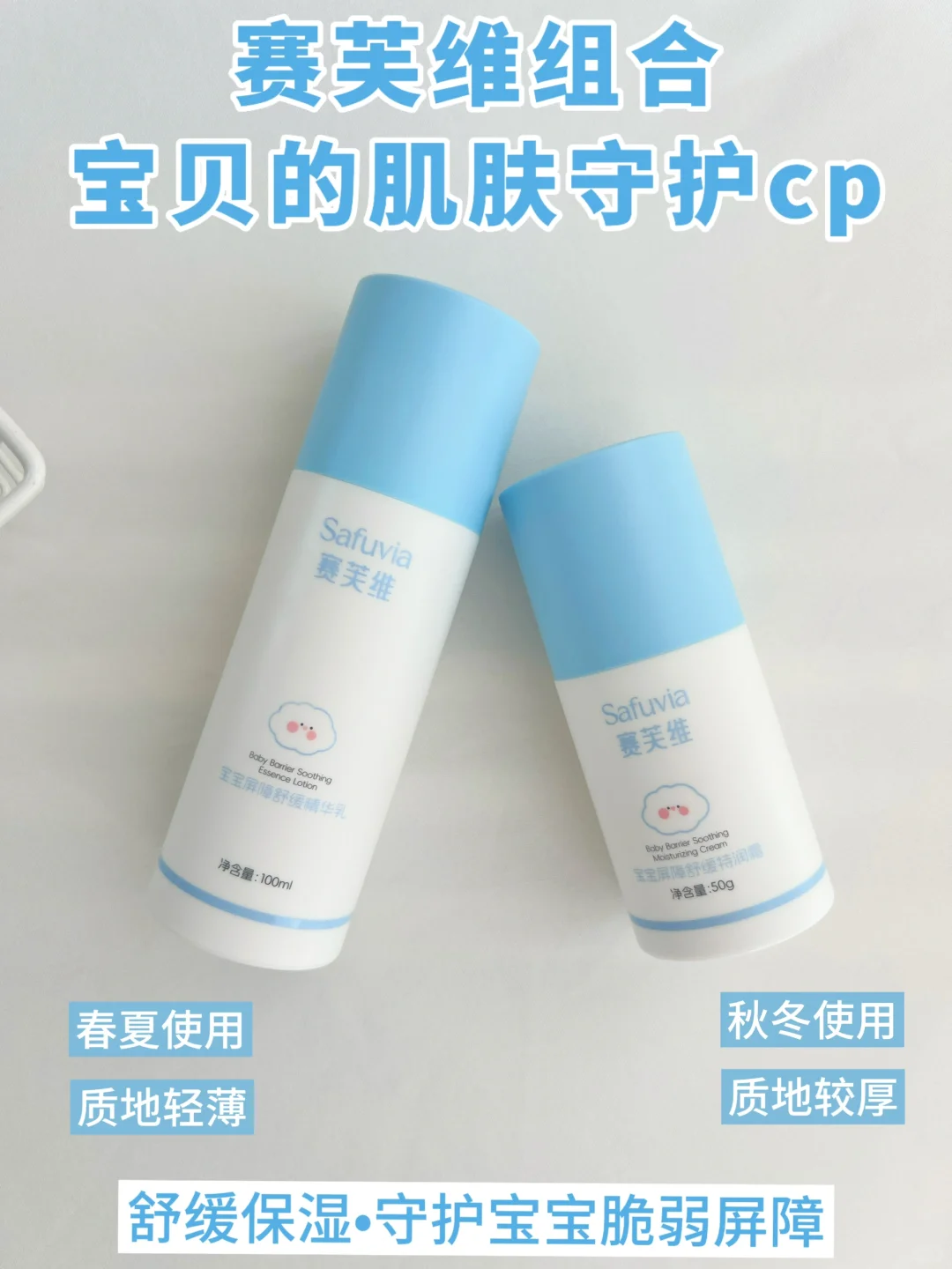 别看我家宝宝现在出门老被夸皮肤好水嫩,其实她这皮肤可不是个好伺候的。 我家的皮肤一遇上换季,就容易变本加厉 干痒、红点点,真的让人捉急~ 为了养护出好皮肤,各方面细节我都可注重了! - 食:均衡饮食,注意避开容易敏敏的食物,比如海制品、热带水果、坚果等 住:保持居家清洁,定期换洗床品,干燥期注意加湿 行:出行佩戴口罩,防尘螨、花粉类 护:注意皮肤适度清洁,做好皮肤保湿修护工作 我给宝宝用的赛芙维宝宝屏障舒缓特润霜(屏障66霜)和精华乳(屏障66乳) - 宝宝皮肤娇嫩,护肤上需要我们加倍留心,所以在品牌的选择上也尽量选择有口碑+大品牌的,像赛芙维是由金赛药业出品,这可是成立20多年的老牌药企,一直在儿童健康领域很有口碑!出品的儿童护肤品牌当然不会差! 另外屏障66霜和66乳的核心成分都是天然贻贝粘蛋白,据说它一般都被用在械字号产品上所,因为自带修护功能,所以也比较有价值~赛芙维还是用心在做产品! 像我家宝宝皮肤娇嫩,容易红脸蛋 爱抓挠 起皮皮 齐上阵,就需要它来舒缓皮肤,把皮肤屏障养厚。今年我家宝宝皮肤告别红苹果脸,而且很少挠脸了,不再是小花猫了。 - 6重舒缓+6重保湿成分真的很懂宝宝的需求,给皮肤补充丢失的水分,还能保湿舒缓宝宝娇嫩的皮肤。宝宝皮肤才能像现在这样稳稳的,我带出去的时候ee们直夸皮肤好好,都想要rua小脸。 - 这俩的质地都属于轻盈好吸收的涂抹,之后能一下润到皮肤里,就连我家这个不爱用乳霜的宝宝都不抗拒。现在我家宝宝还能像模像样地对着镜子,自己抹脸呢,这小模样也太可耐了吧! - 在这个干燥的换季,有它俩守护,就好像给皮肤穿上隐形的“保护衣”,滋润保湿修护,宝宝皮肤状态稳稳的,起皮皮苹果脸的几率都低了!宝宝皮肤状态好,我就少焦虑了,看着小家伙的颜值还变高了呢~