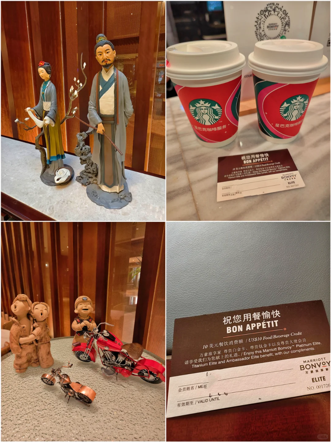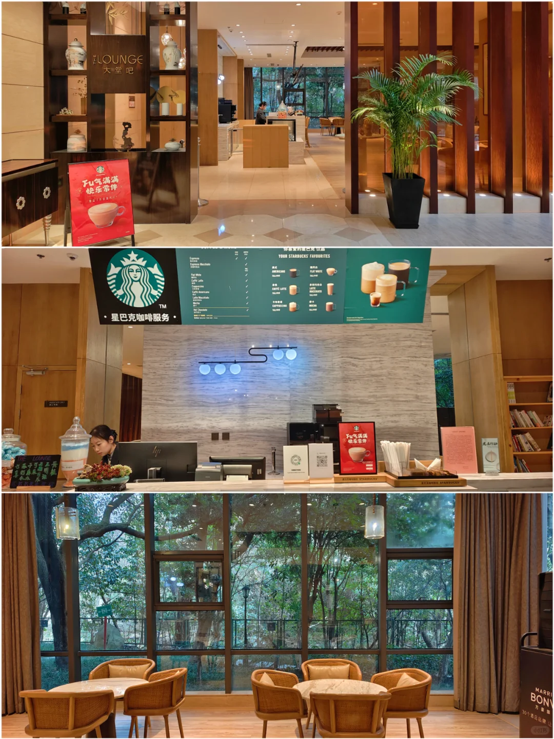 酒店没有行政酒廊,给了10美元餐饮消费券,大堂吧有星巴克,正好可以买2杯。早餐在一楼的万荟轩,就是普通的酒店早,有无锡小笼等当地特色( P9 ~P11)。