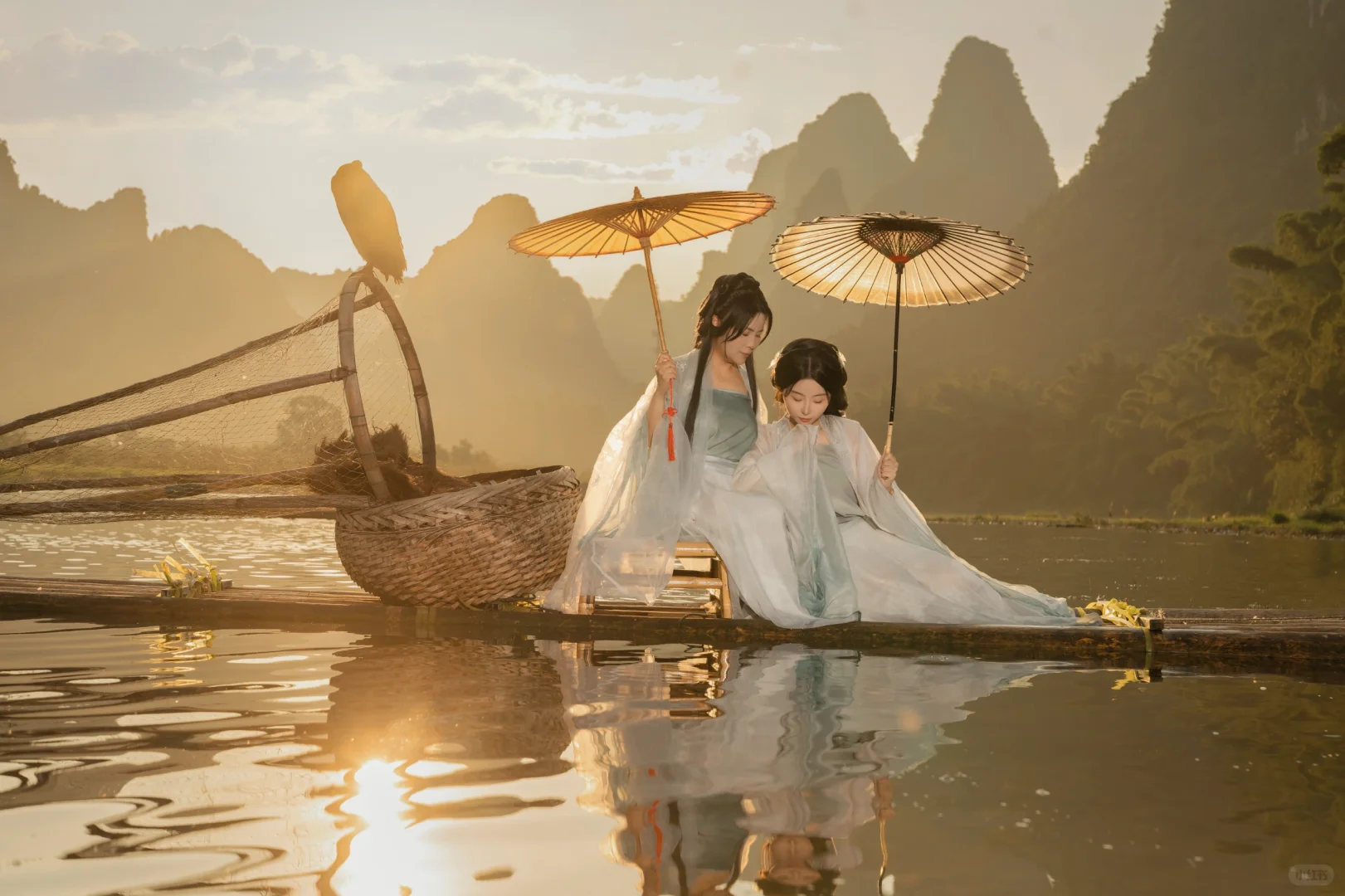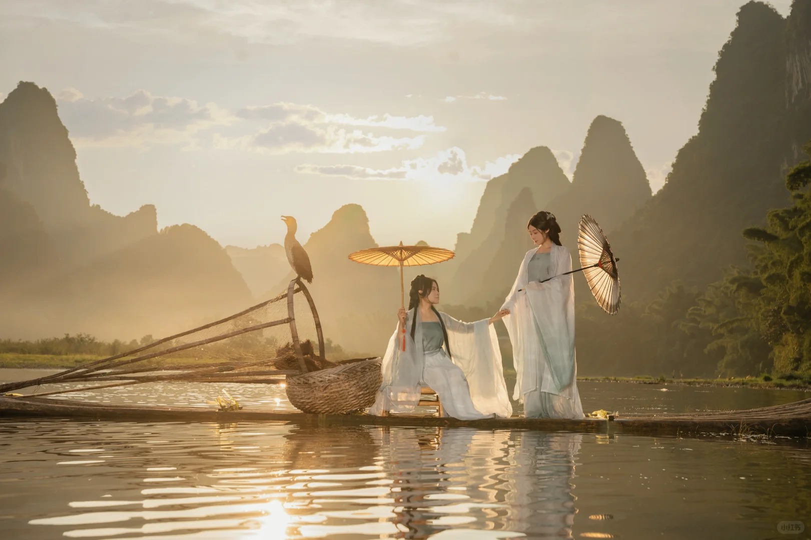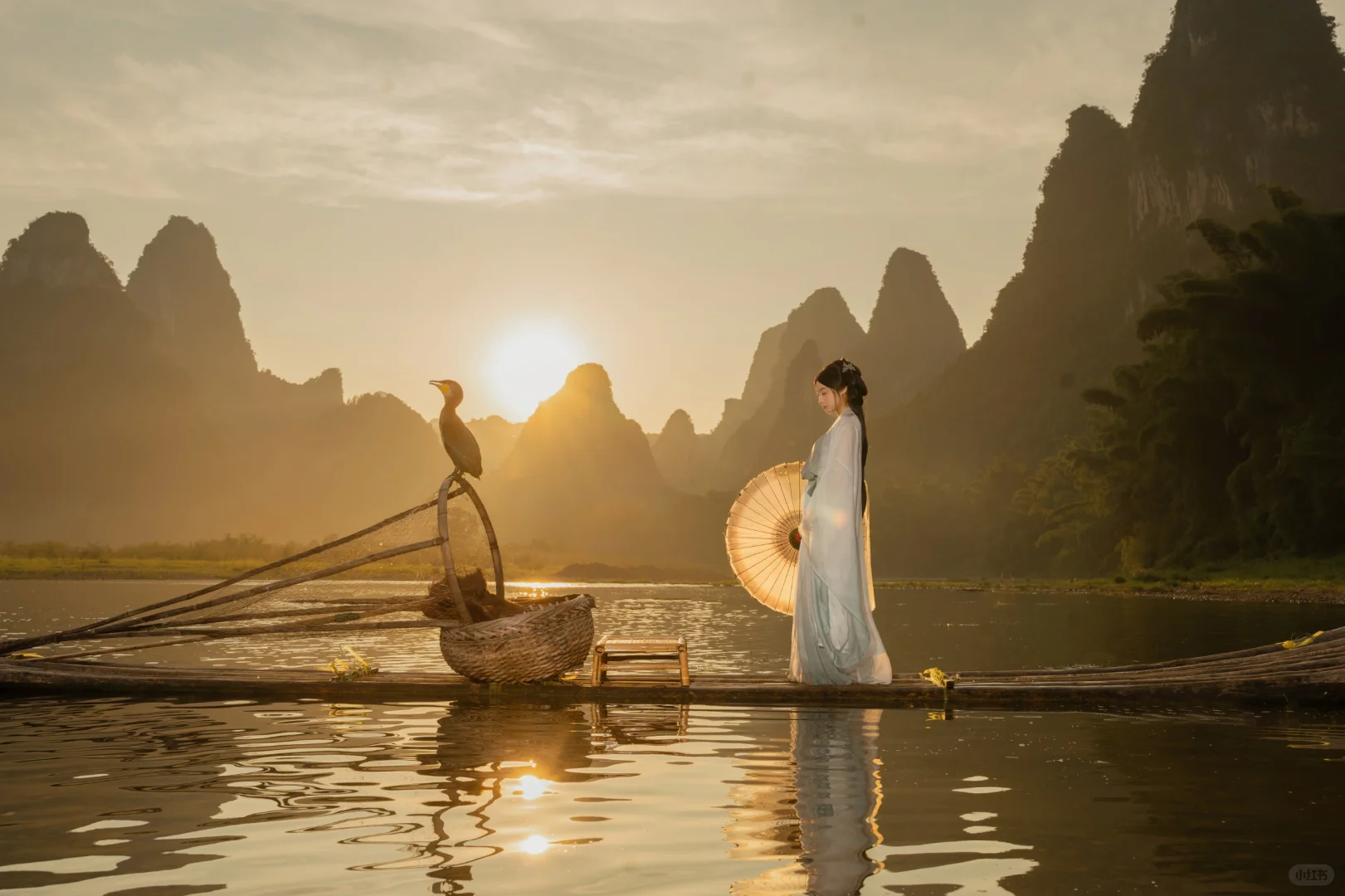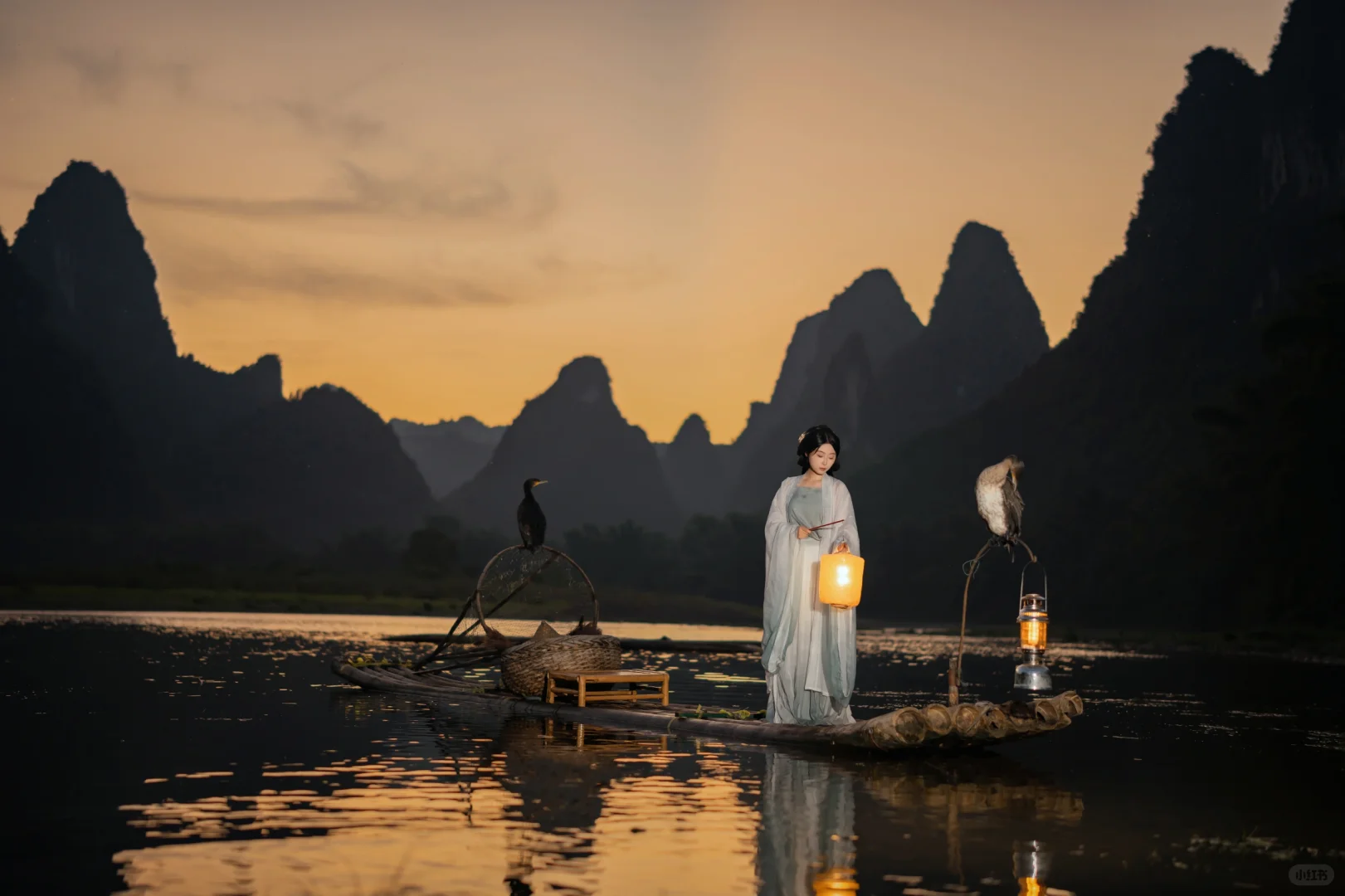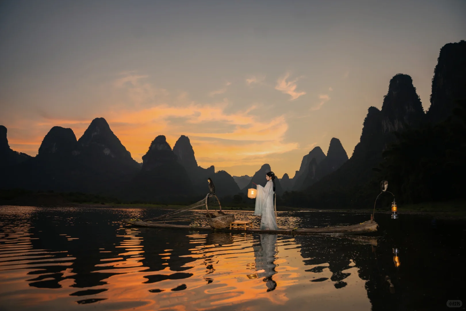 桂林山水甲天下之地,拍渔舟唱晚也太美了