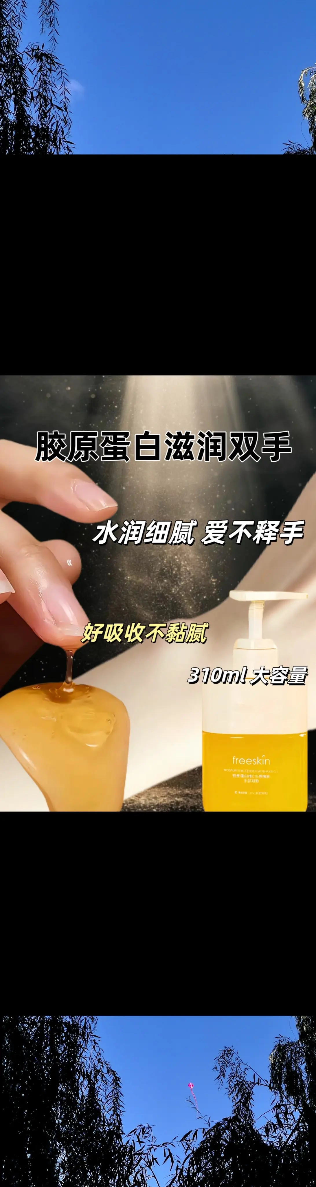 秋冬来了,手容易干燥起皮的姐妹!可以用这款freeSkin胶原蛋白维C护手凝露,水润啫喱质地,清爽不油腻,富含山茶籽油+牛油果油+烟酰胺,淡淡的花香好好闻,补水保湿,并且每瓶310ml大容量,关键现在还有第二支半价!随便用也不心疼!
