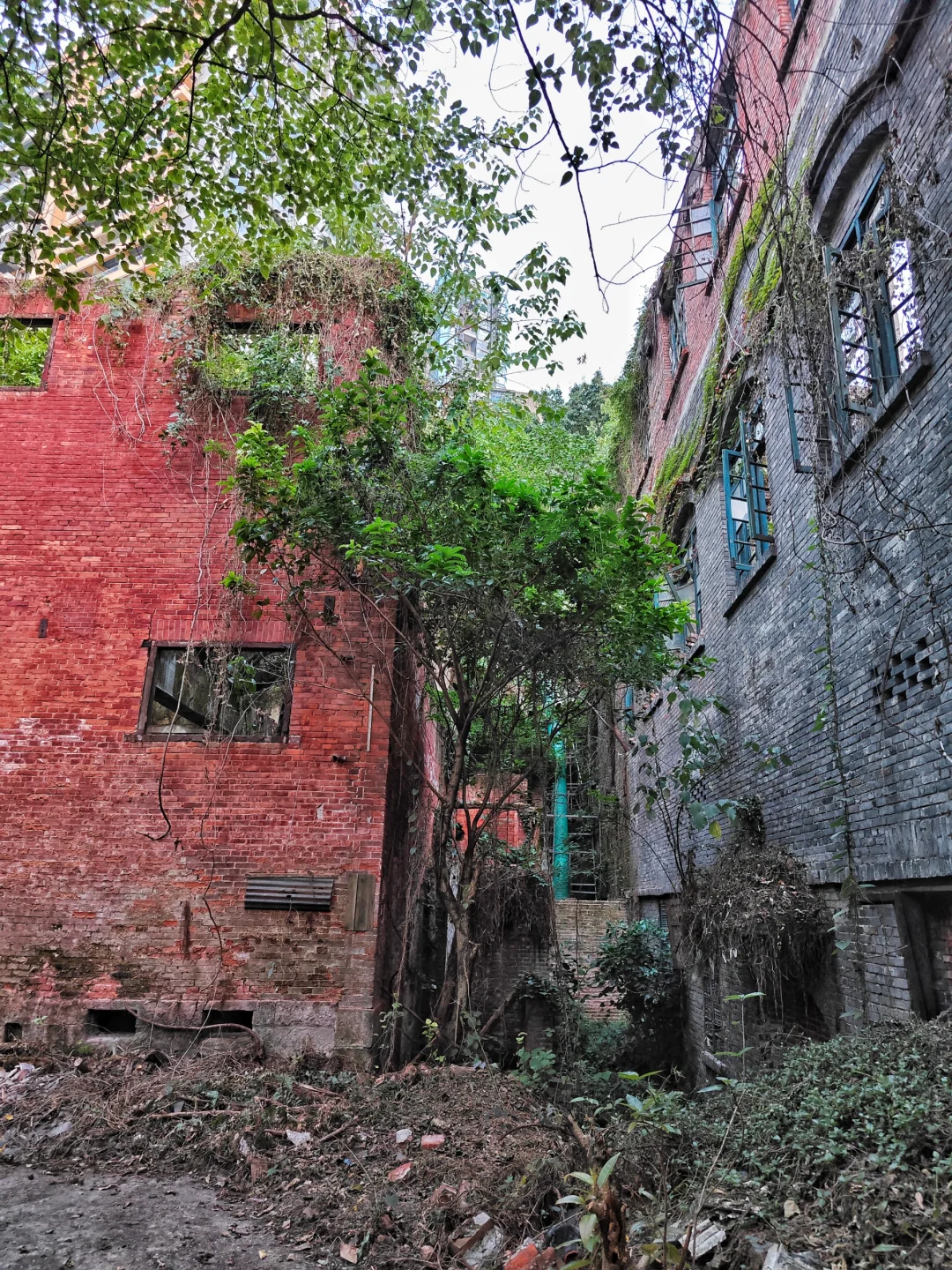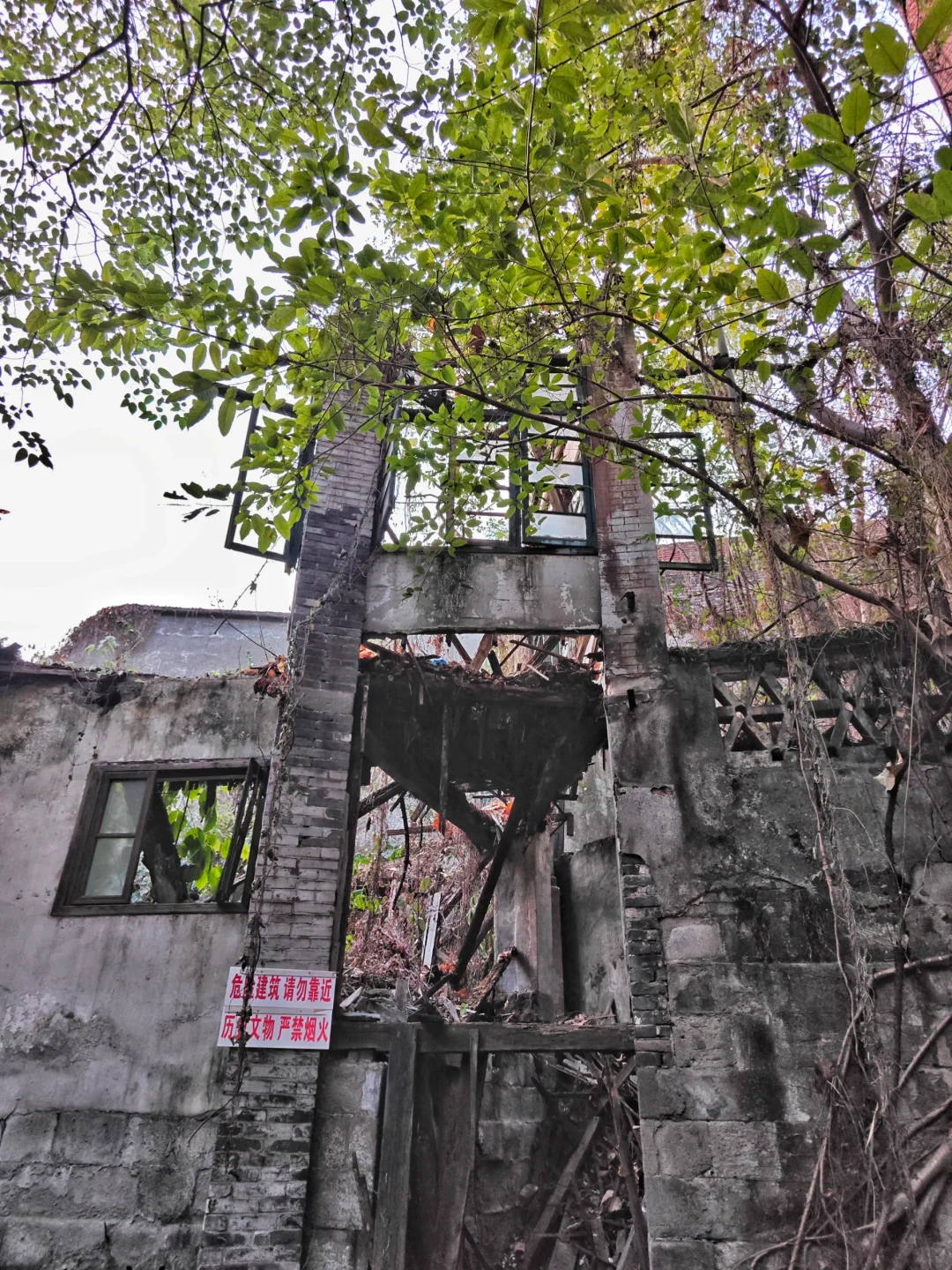 1945年抗战胜利后,中电回迁,1951年,这里成为重庆茶厂所在地,计划经济时代著名的“峨眉”牌重庆沱茶就是这里生产的,当年老重庆无人不知,公园里老茶客们一碗茶半碗茶叶,除了茉莉花茶,基本就是这个重庆沱茶。可惜2001年重庆茶厂倒闭,最正宗的重庆沱茶就此消失。同时,茶厂厂房,也就是中电的这些摄制场,也跟随着坍塌在历史的尘埃中,如今这里只剩部分框架,虽然挂牌文保单位,但你懂的,要去的快去,也许明年就彻底倒掉了。