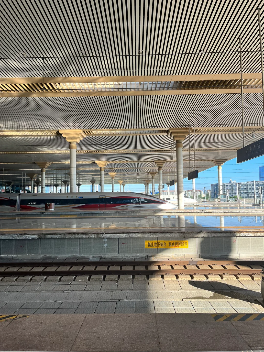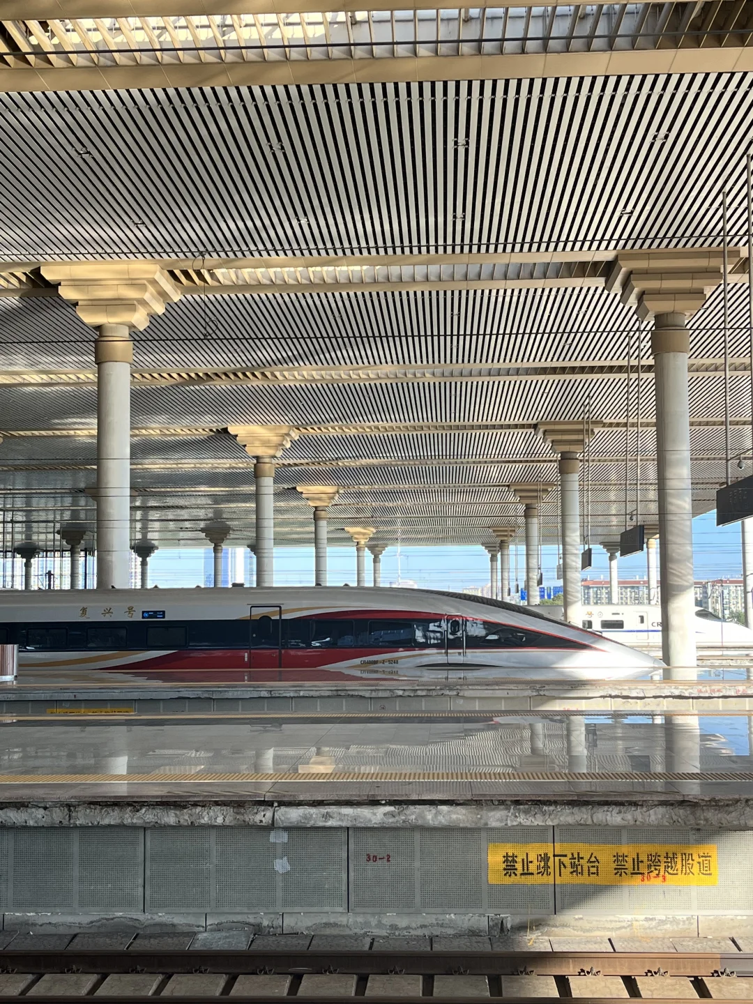 赶早班高铁,遇到隔壁站台一辆“中国红”涂装的复兴号,红色的流动丝带,确实高颜值[哇R][哇R]