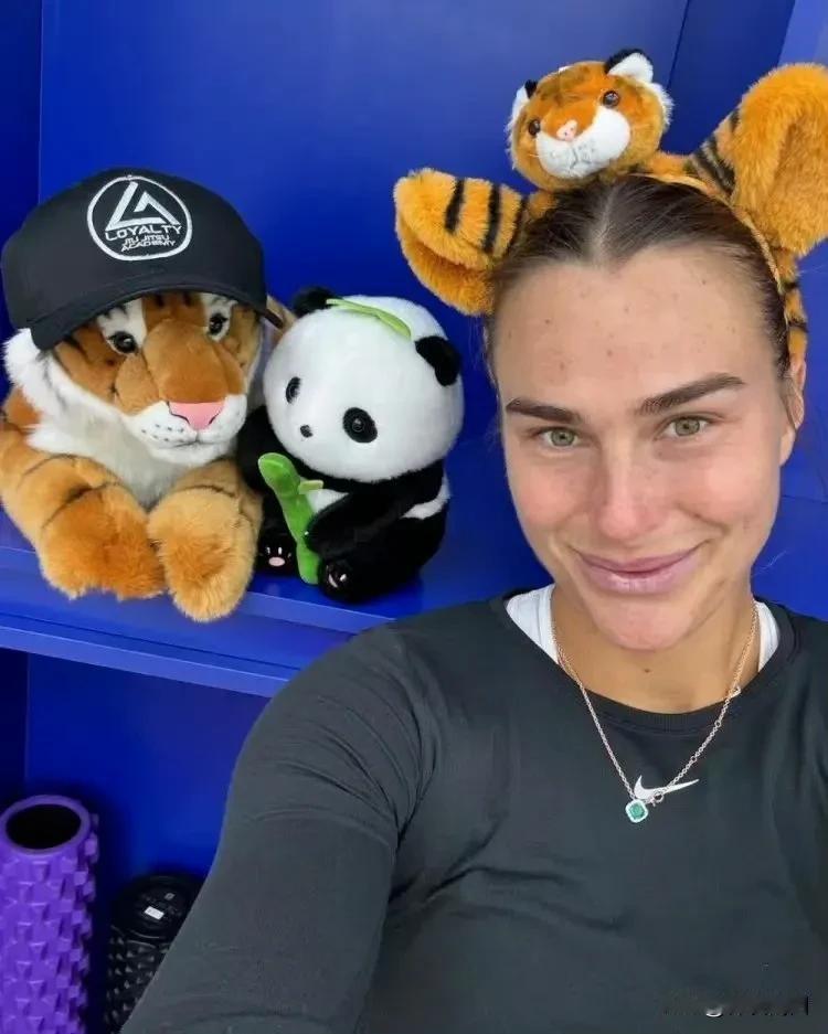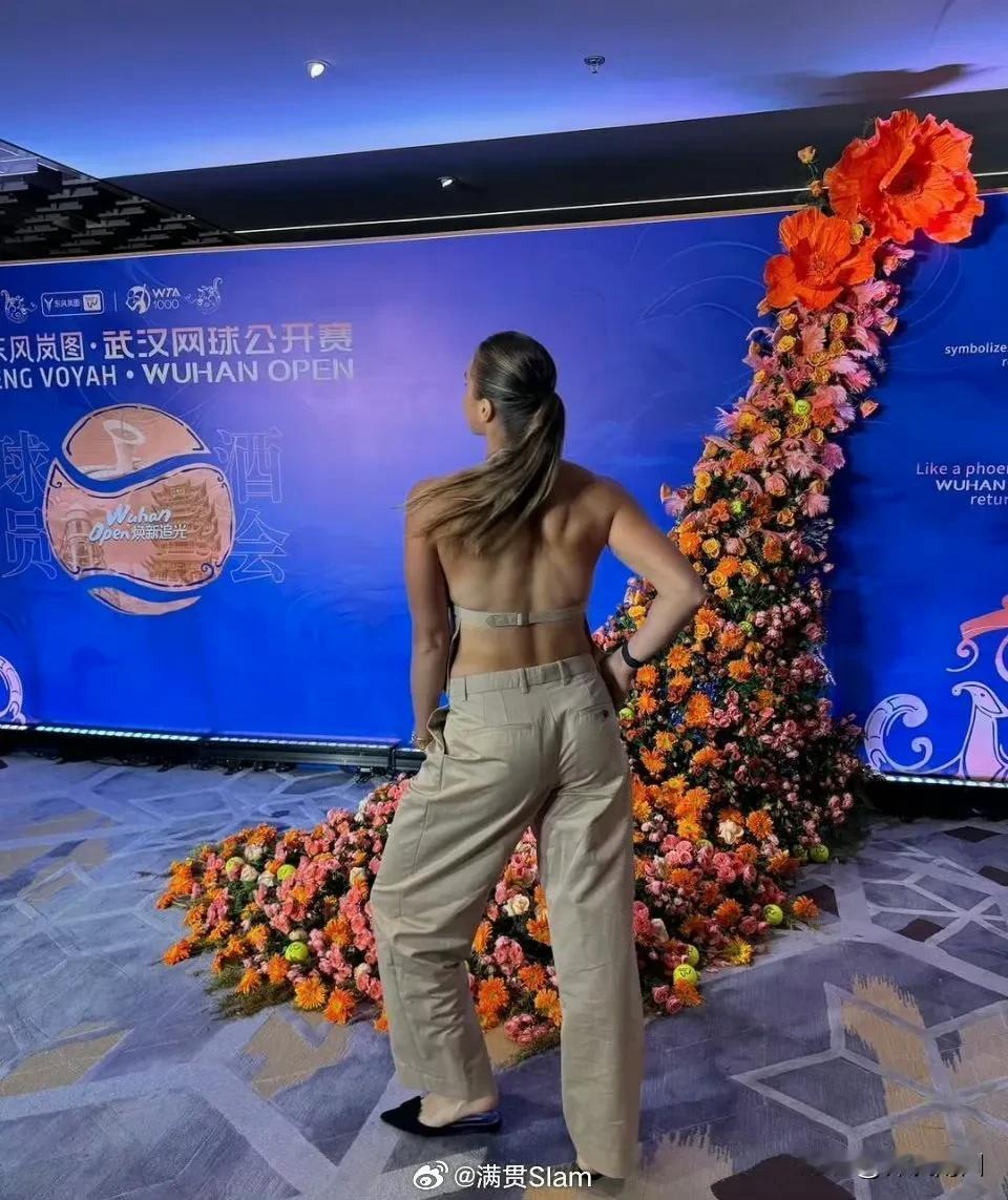 萨巴伦卡在#2024武网# 酒会上穿的套装还有后续,转过身来背心一件露背装。后背很漂亮。紧实的肌肉线条积蓄着让对手恐怖的力量。她说非常喜欢中国粉丝送给她的老虎头帽子,赛场之外也是一个柔美可爱,喜欢打扮的精致女孩。