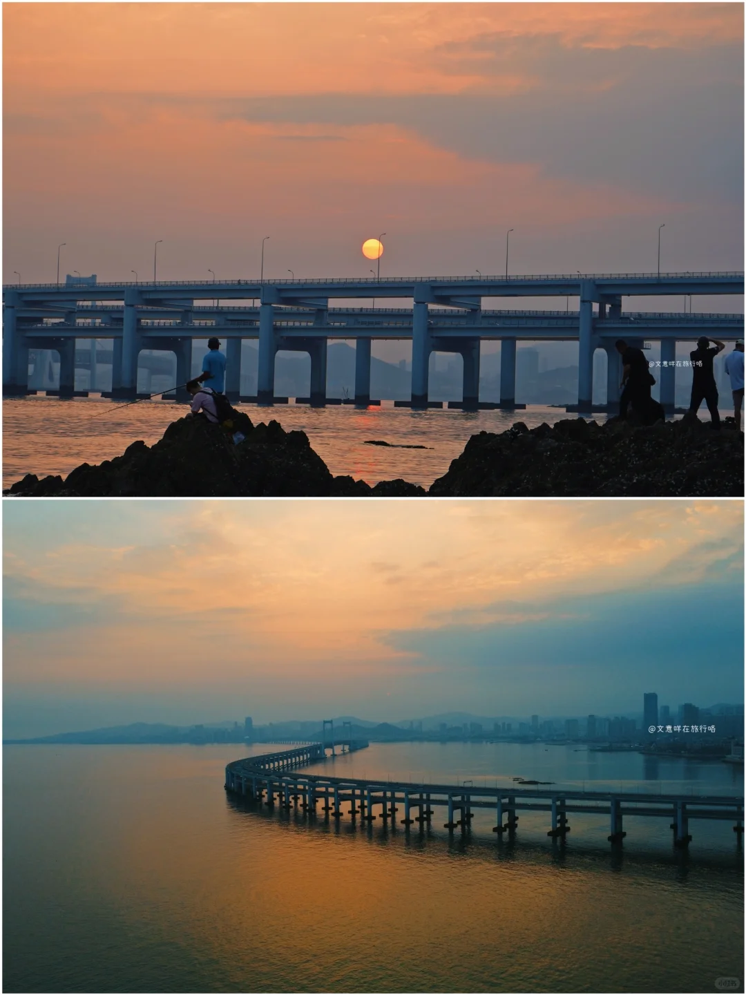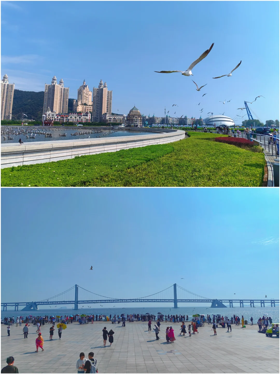 中山广场→俄罗斯风情园→有轨电车大连站(201路🚃)→松山寺→星海广场(可以喂海鸥,全年都有)→跨海大桥(网红打卡点📸)→银沙滩(可以看日落)→星海广场(晚上看灯光秀)