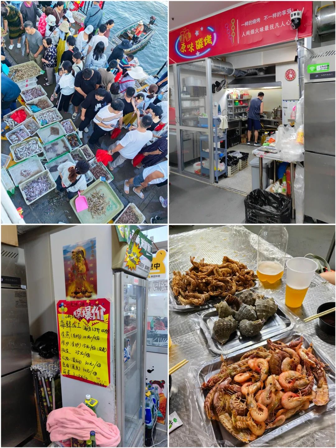 2️⃣金福瑞海鲜烧烤:在长峰农贸市场里,海鲜加工价格透明,厨房也是开放式的,完全不用担心海鲜被调包和少量的情况🦀,味道也很鲜美。他家主要做本地人生意的,回头客很多,老板也很热情,还教我们怎么吃螺,怎么吃皮皮虾最快~