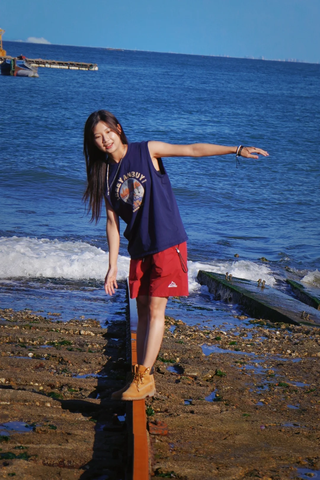 去了去了,人算少的,下午光线好很好拍,旁边的小沙滩背景有小船,海源公园也可以不去了,后面的废弃大船还能拍点废旧风