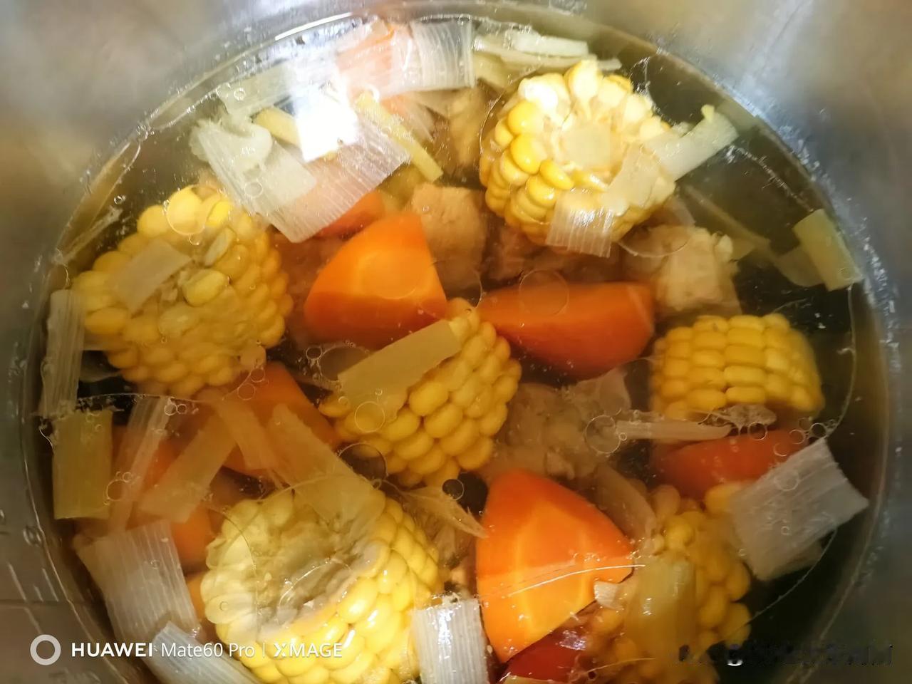 #秋日美食大赏#我这个不会做饭的老人在女儿的遥控指挥下,今天煲了一锅玉米胡萝卜排