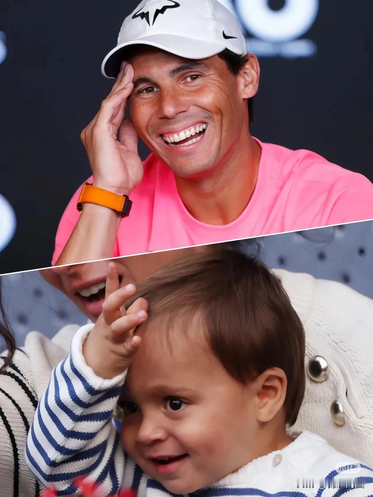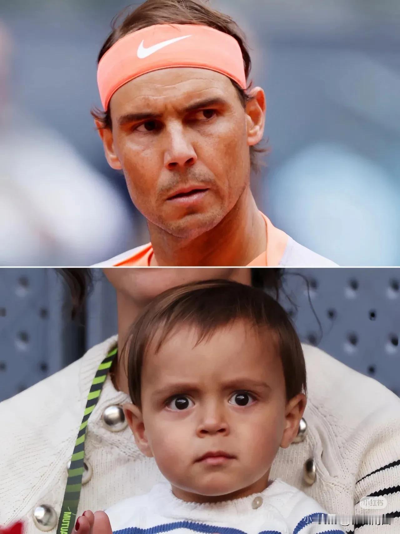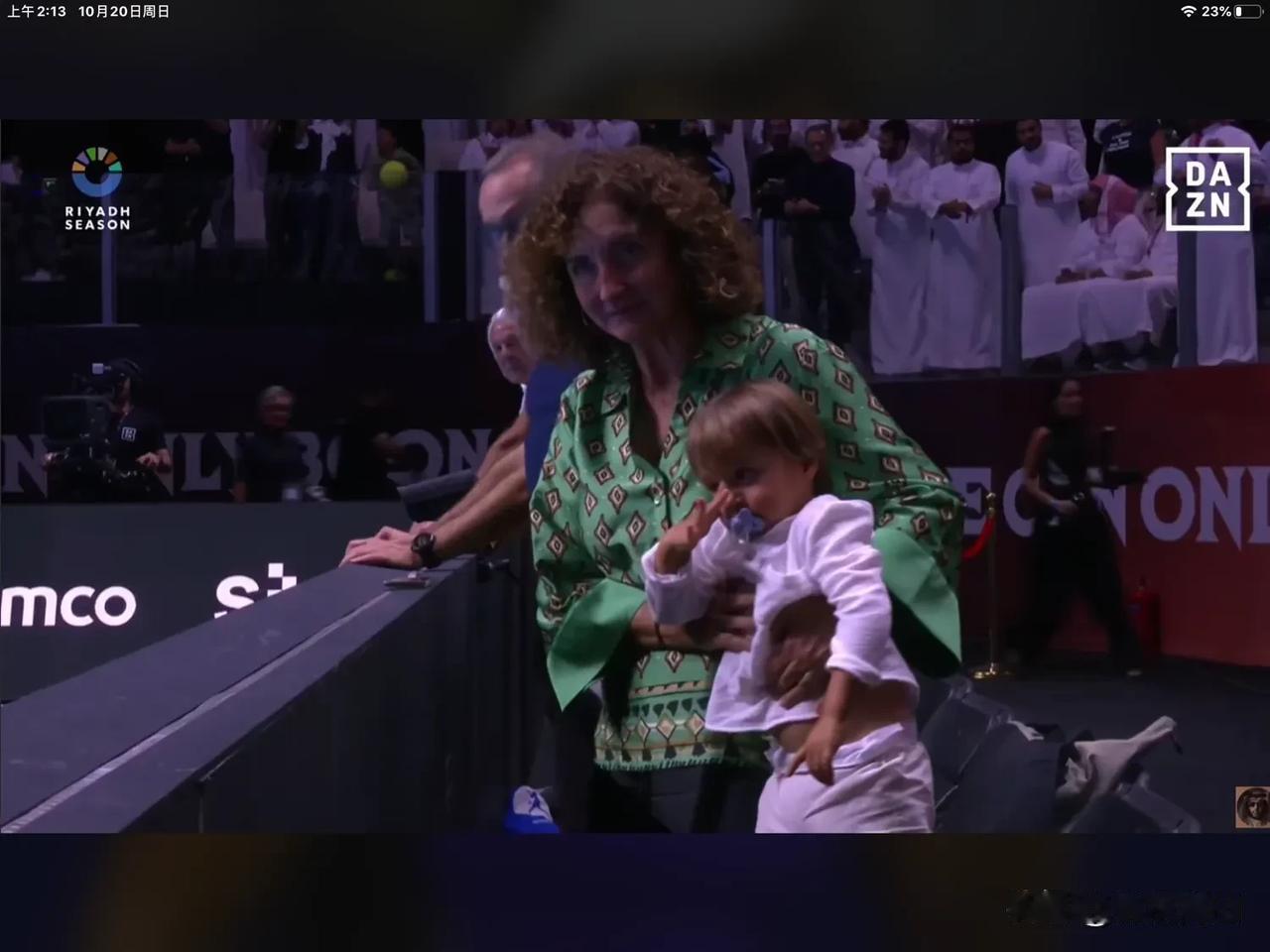 纳达尔的儿子才两岁,但从社交媒体出现的照片来看,我一直以为他起码有3,4岁了。直到看到他在#利雅得六王赛# 观众席时,被抱在怀里,含着安抚奶嘴的镜头,小小一只,还是小婴儿的模样。 小豆子圆乎乎的很可爱,有他老豆一样犀利的眼神。好的视力是一个顶级运动员的特质,希望小豆子将来能继承老豆衣钵😄。
