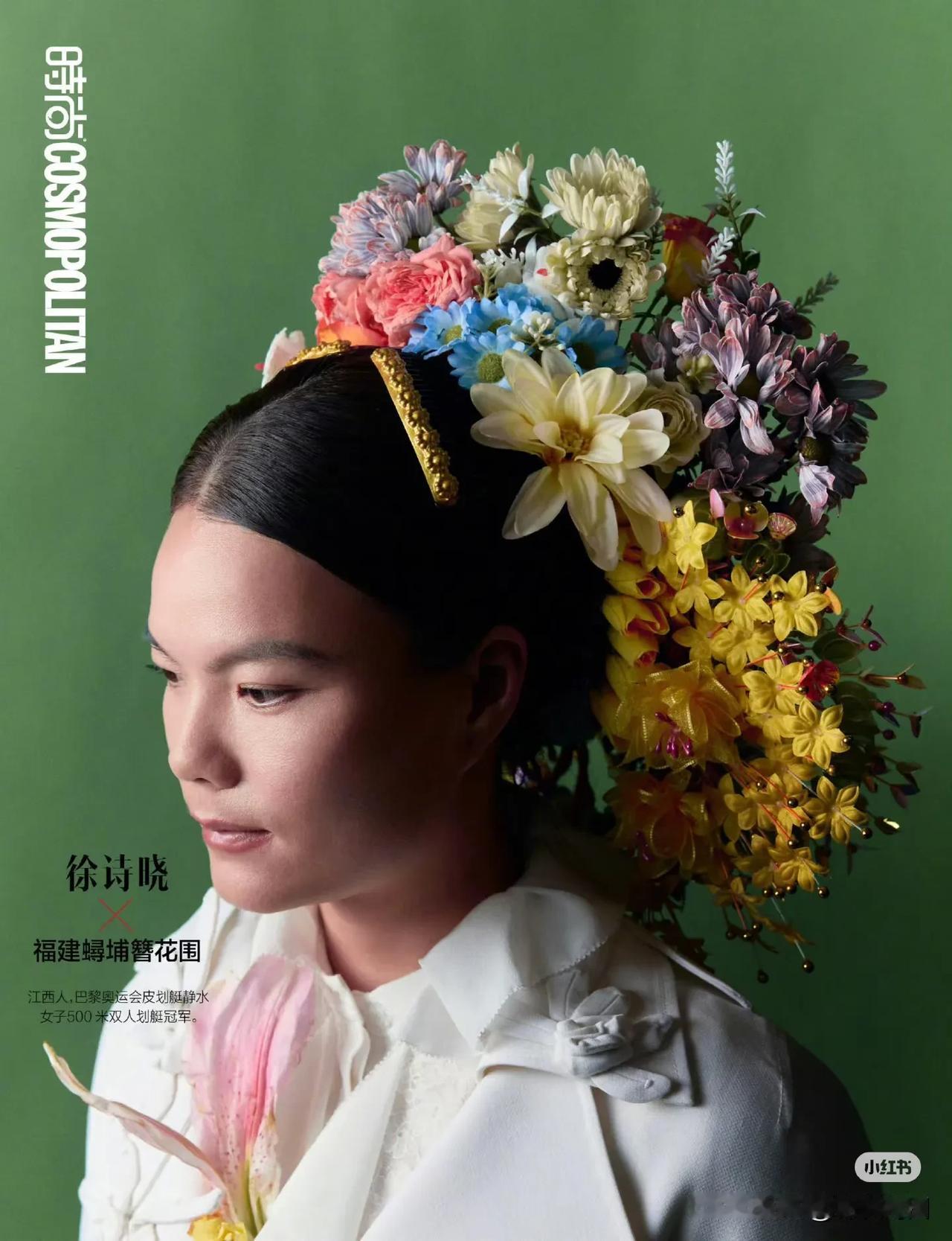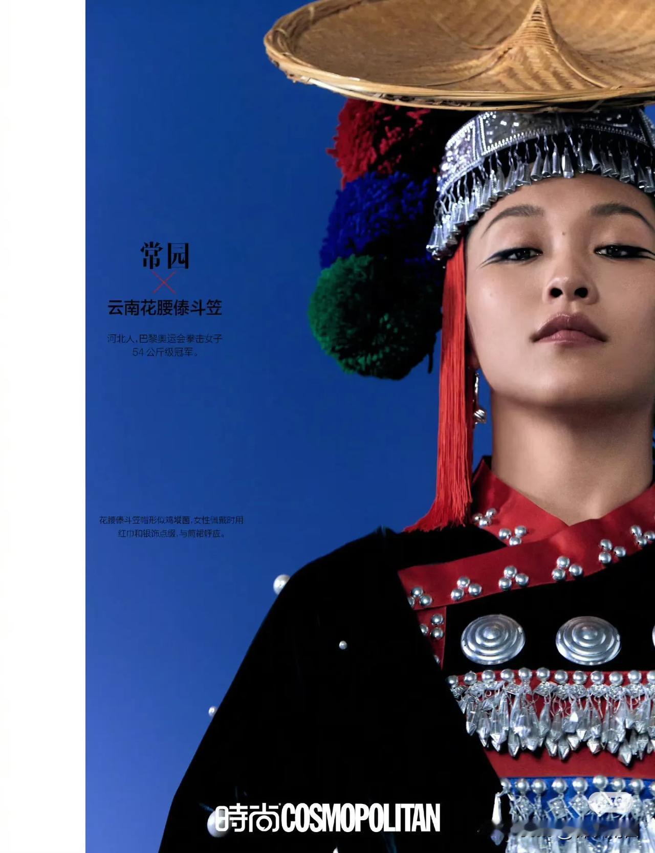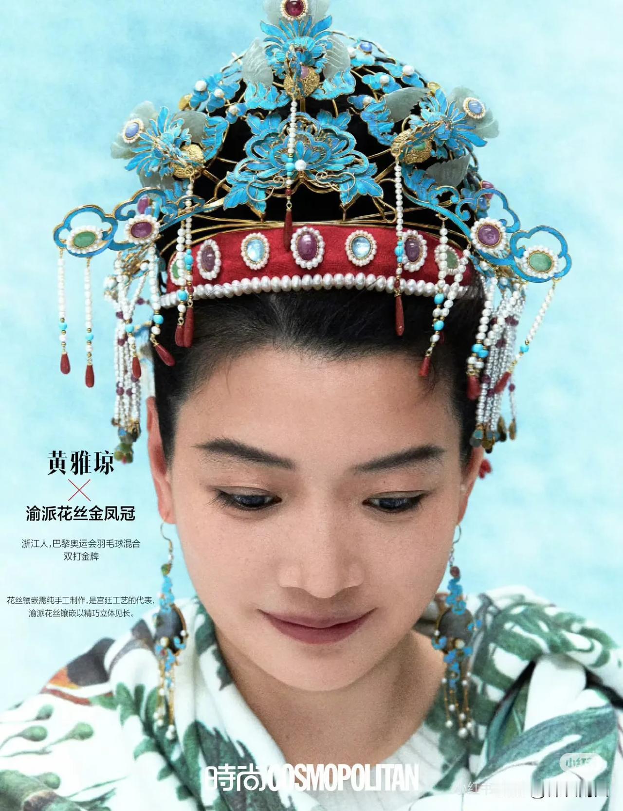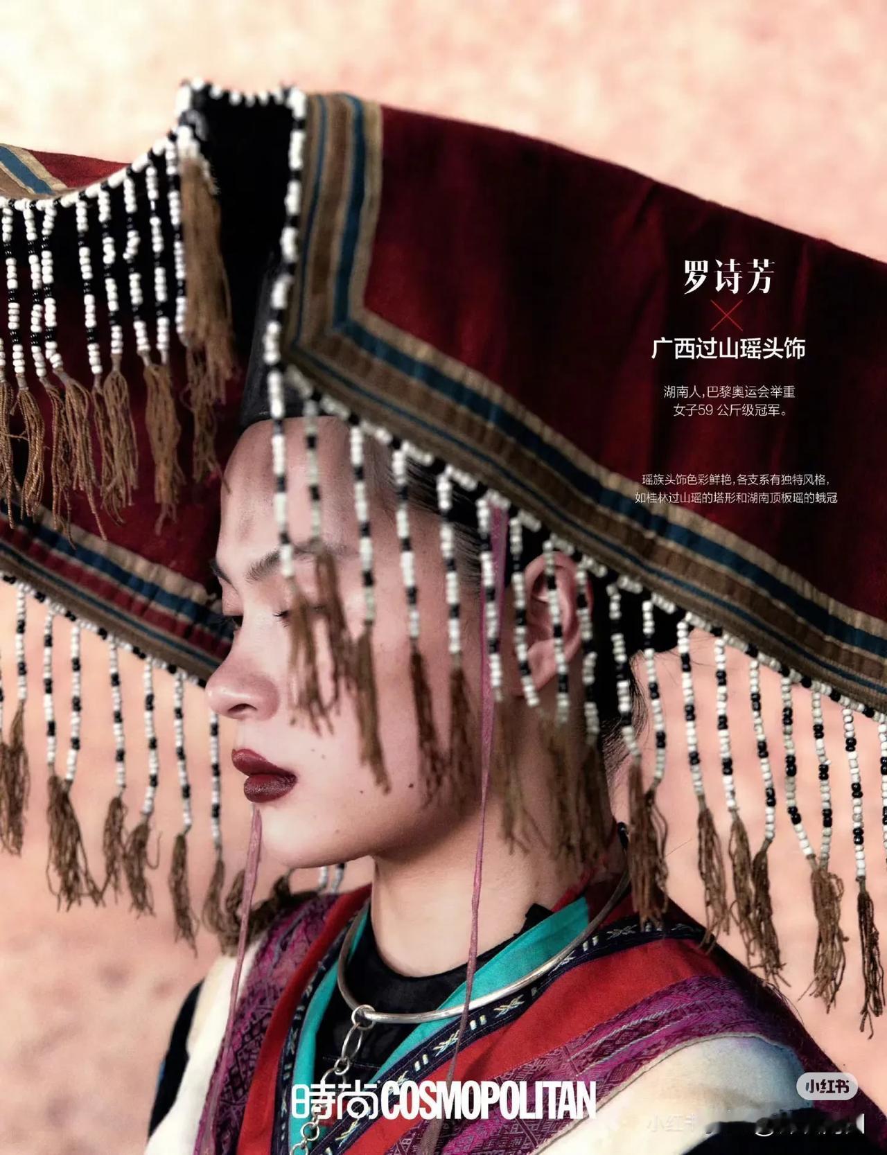时尚COSMO与奥运冠军合作的中国传统头饰封面,刚柔共美中国冠,拍出了女性魅力,很惊艳,也弘扬了传统文化。“冠”字是头冠,也隐喻冠军,一语双关。 之前看到过雅琼头戴渝派花丝金凤冠的照片,原来是做了一个系列。四川彝族银饰头冠,福建蟳埔簪花围,京剧奎头七星额子,广西过山瑶头饰,云南花腰傣斗笠,民族的东西有人文气质和底蕴,是可以静下心来看的内容。