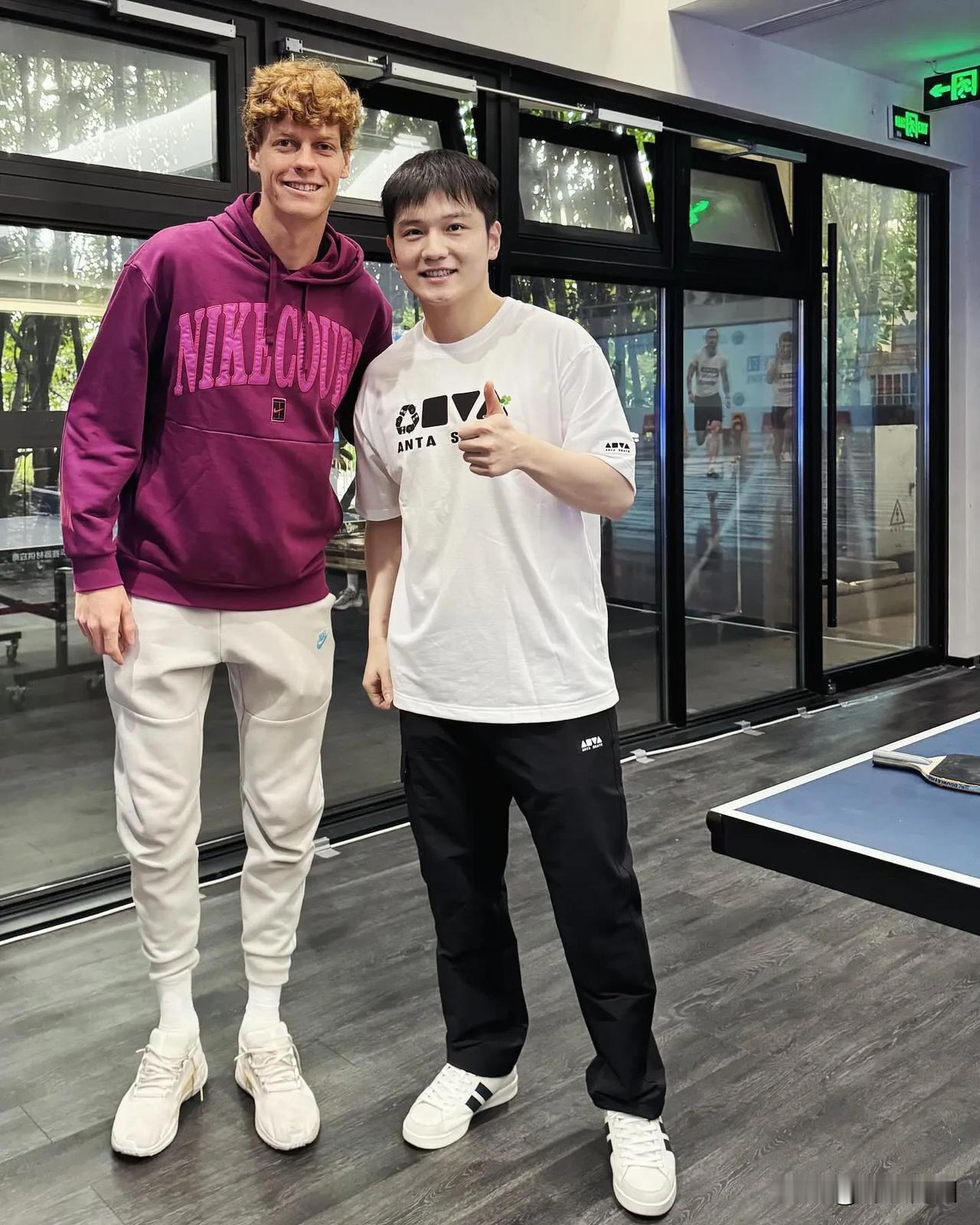 樊振东新开了INS,签名是“乒乓球运动员,东京巴黎金牌获得者;体育爱好者,皇家马德里足球俱乐部粉丝,霉霉粉丝。”还是很低调的简介。 第一条发文是与网坛新老巨头的合照,和纳达尔在巴黎奥运会餐厅偶遇的合照开始,三巨头已集齐。弥足珍贵。 以后多多发文呀[大金牙]。
