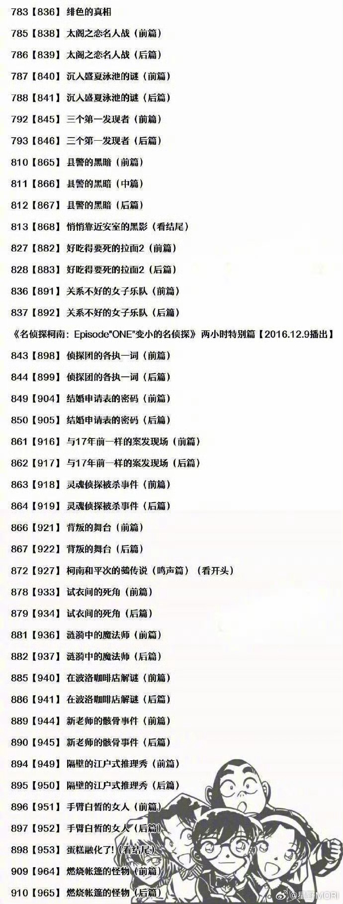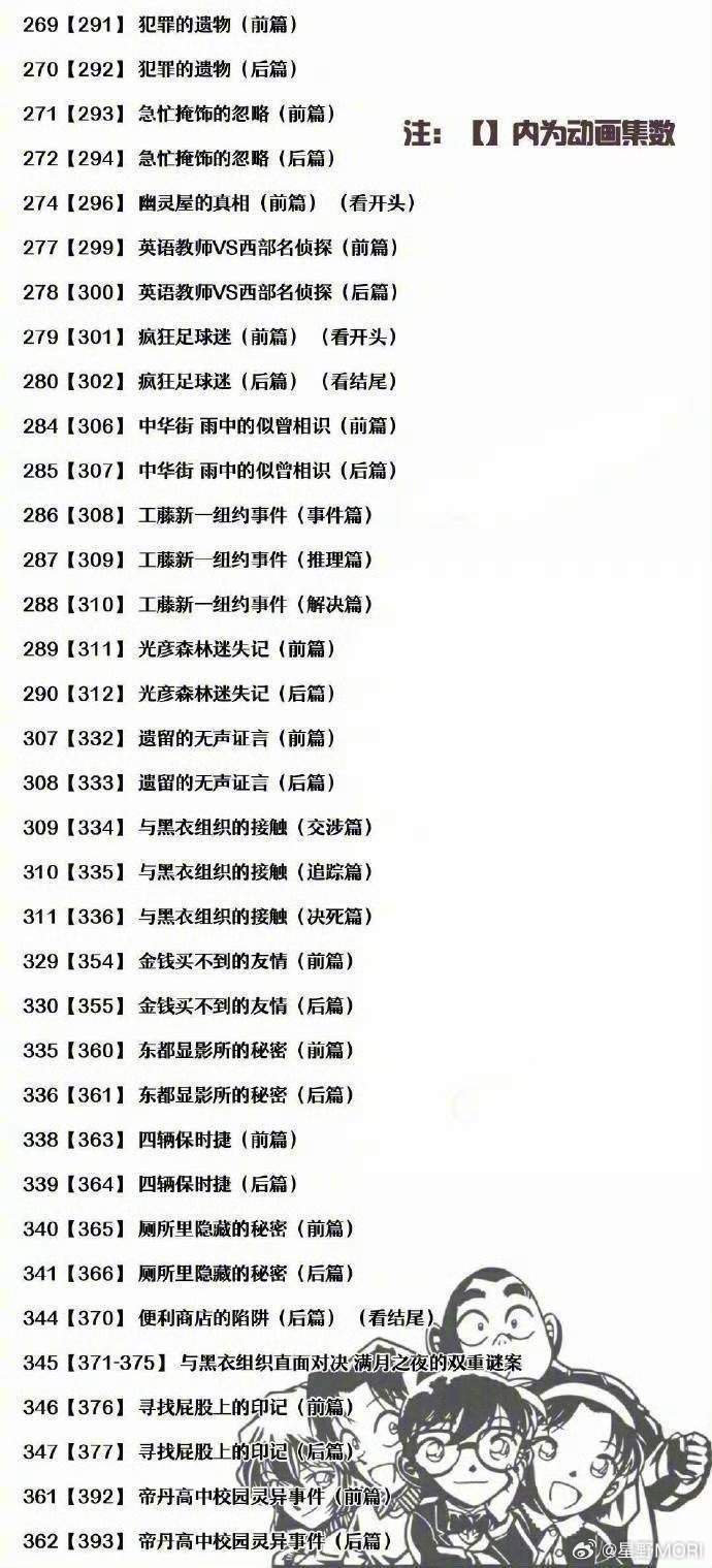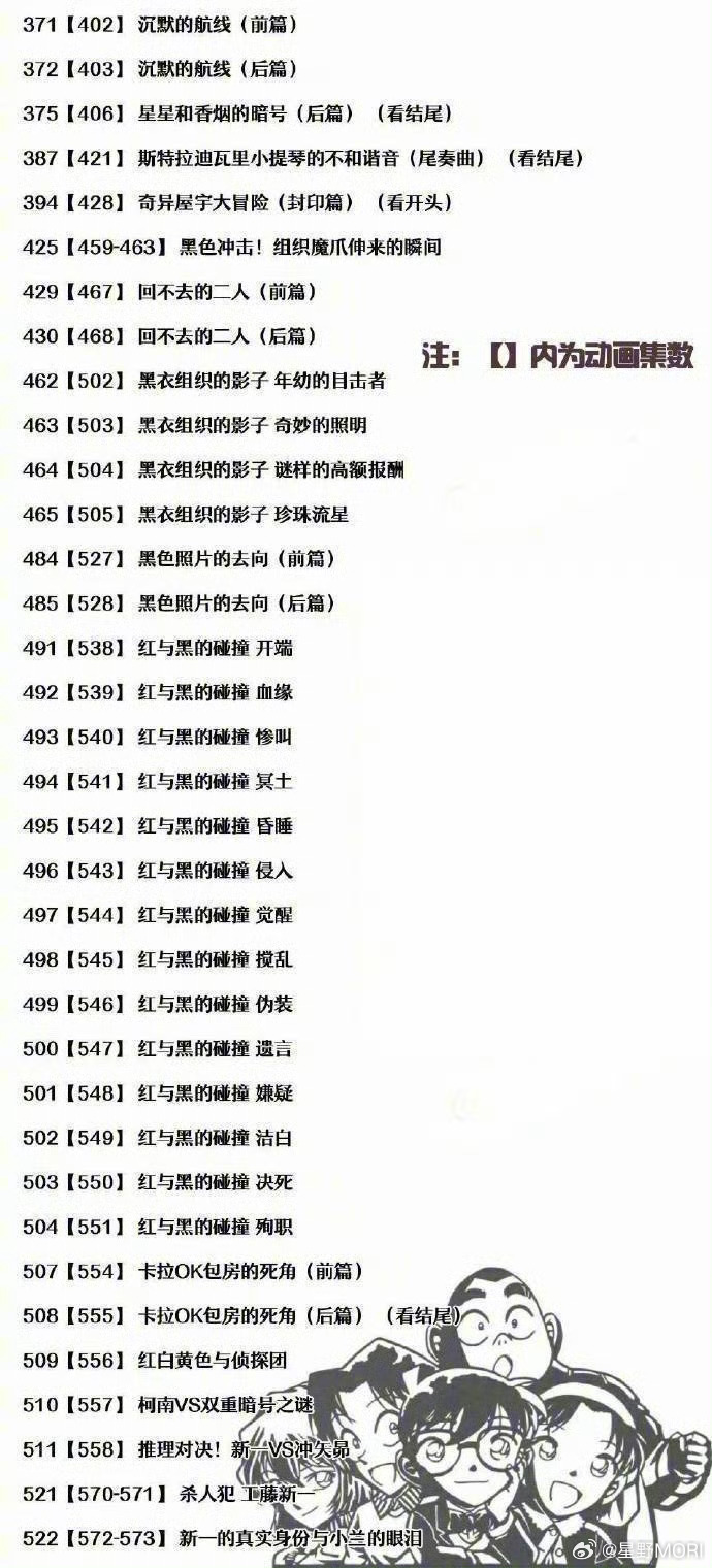 『名侦探柯南』主线集数汇总。动画已经出了1000多集了,刷不完嫌麻烦的可以直接看