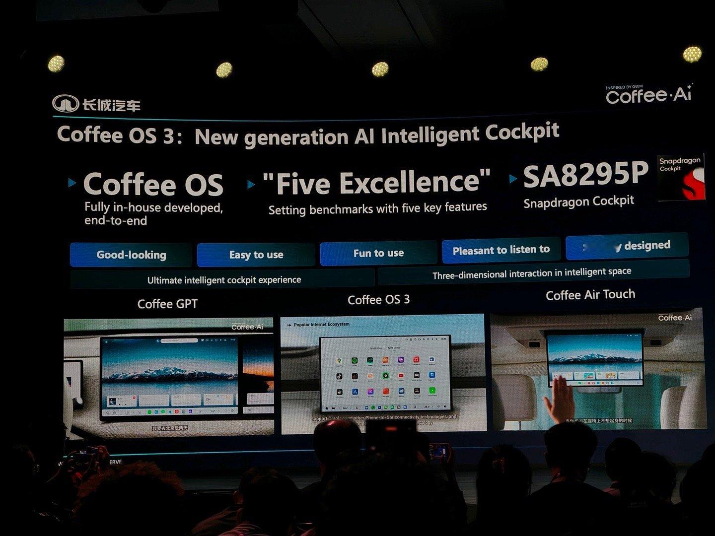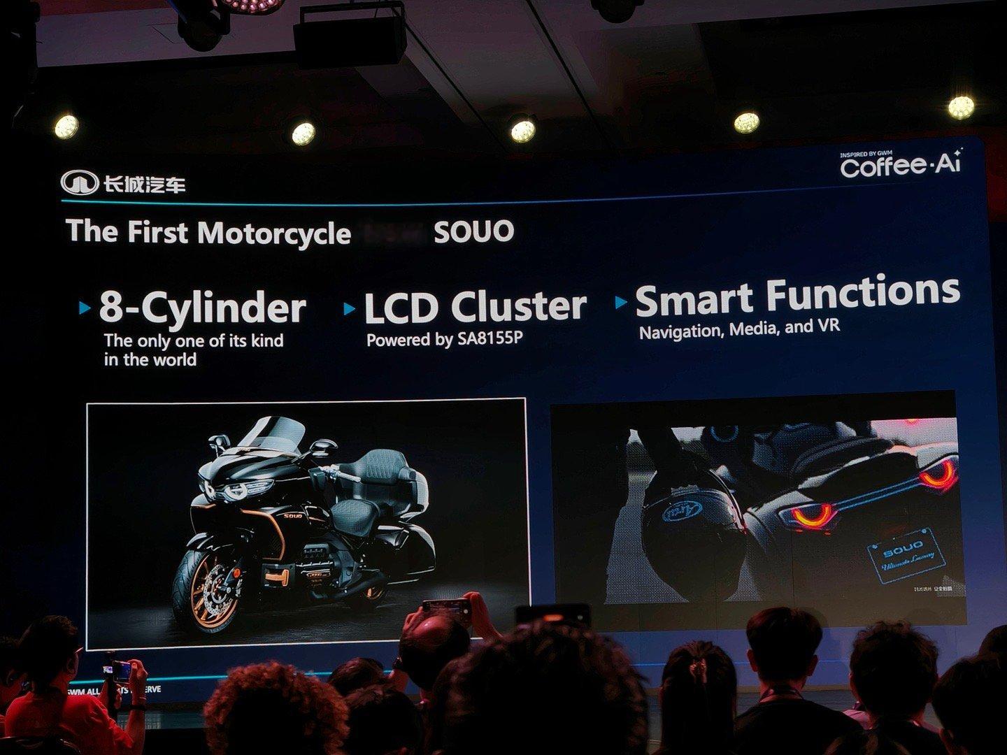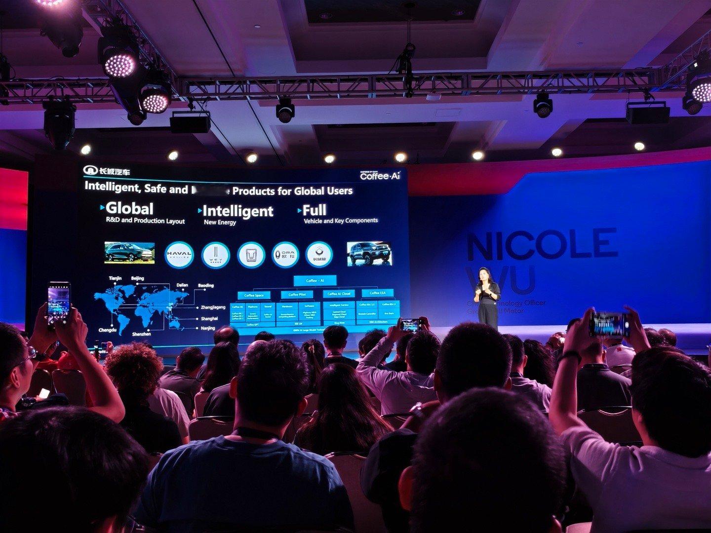 长城汽车CTO Nicole Wu(吴会肖)总登台演讲,向全球记者介绍长城集团的业务模块、 企业愿景、咖啡OS的体验,还把灵魂八缸摩托运来了!