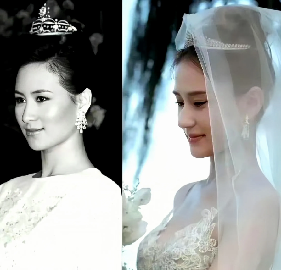 尽管何超莲青春貌美,但我更倾心于何超琼的容貌与气质,她佩戴冠冕、身着婚纱的模样,令人联想到戴安娜王妃当年的风采。