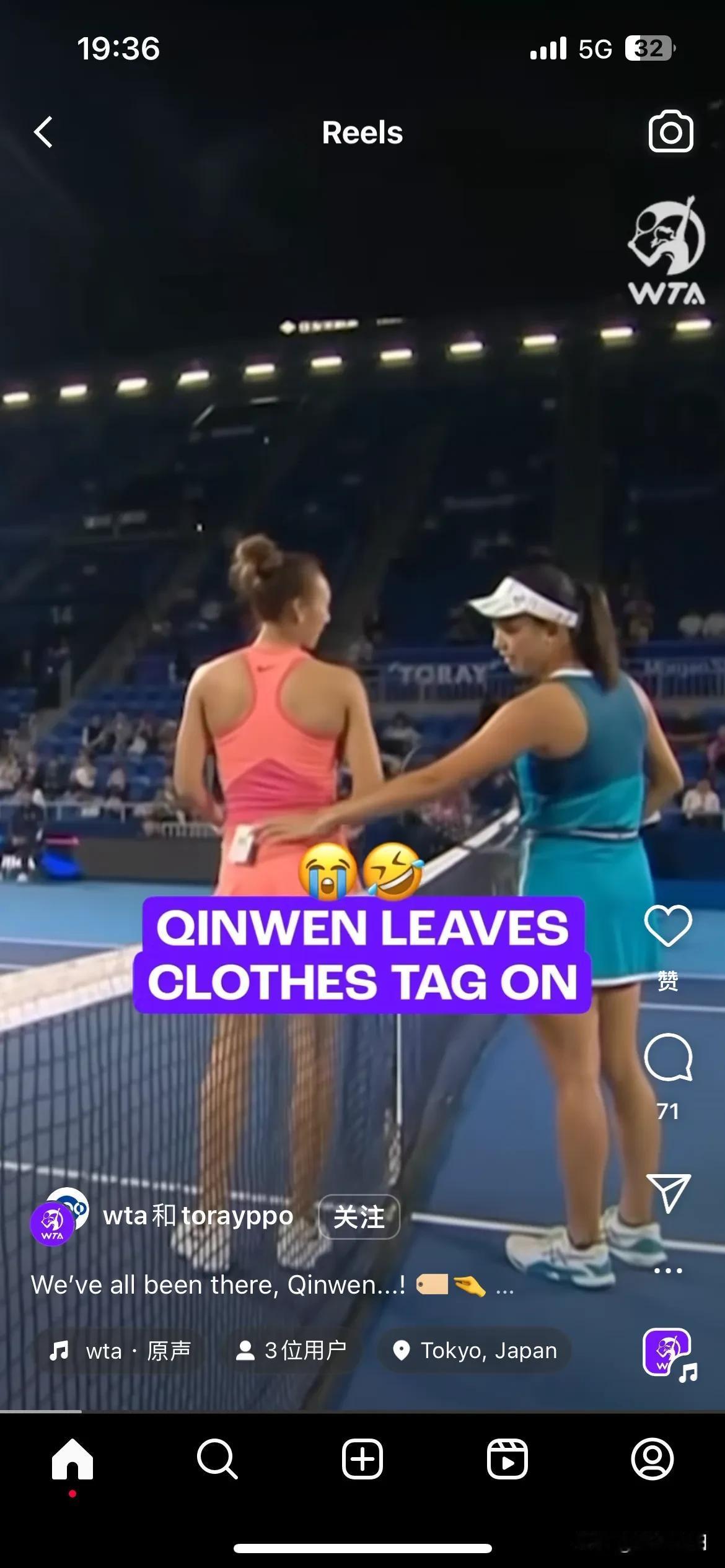 WTA东京500,头号种子郑钦文直落两盘,以7-5、6-0击败内岛萌夏,晋级8强。她的下一轮对手是跳跳费尔南德斯。武网之后再战,希望延续之前的胜绩。 今日比赛有个小插曲,郑钦文忘了把她衣服上的标签剪掉,合影时她的对手友情提醒了她。有个疑问,她们肯定同样款式的运动服有很多套轮着换,问题是穿之前不洗一下吗?