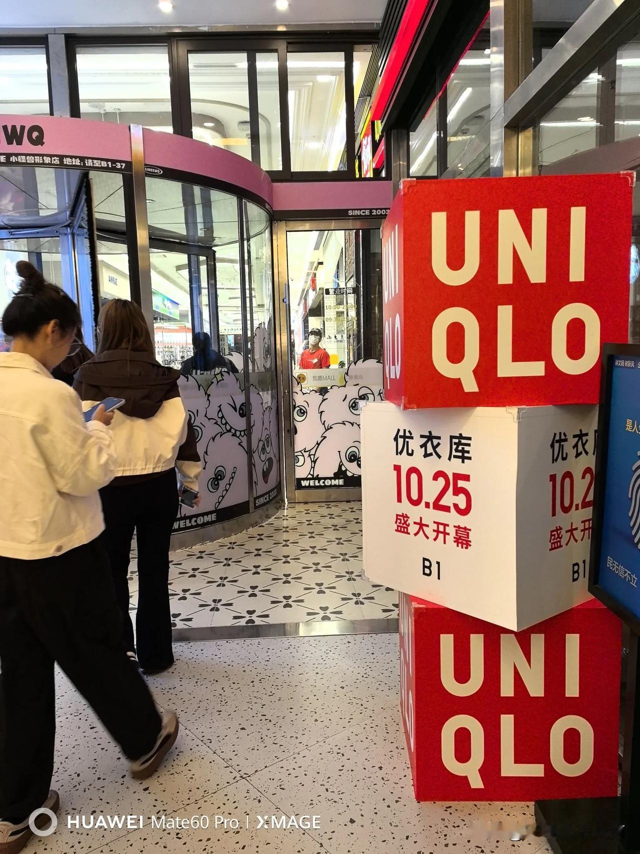 好消息!青岛市北凯德优衣库10月25日盛大开幕,有兴趣的朋友千万不要错过。 凯德优衣库这个广告,已经在装修的门面上宣传一个多月了,优衣库的店面一直在封闭装修… 明天,终于可以揭开它神秘的面纱了! 盛大开幕时人会很多,店内的促销礼品也不会少,希望前来购物的朋友,做到守秩序,讲安全。 安全第一牢记心中。