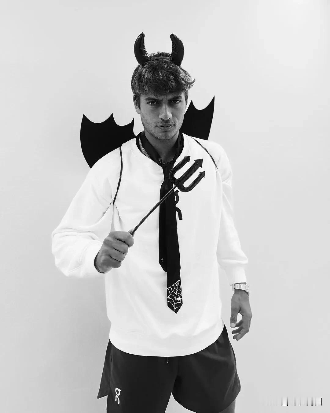 快到万圣节了,球员们拍了一组天使和魔鬼装扮的照片。 Trick or treat🎃 发现蒂亚福假扮魔鬼不需要太多修饰[打脸]。恶狠狠的瞪眼和魔鬼面具一样是恐怖元素[笑哭]。