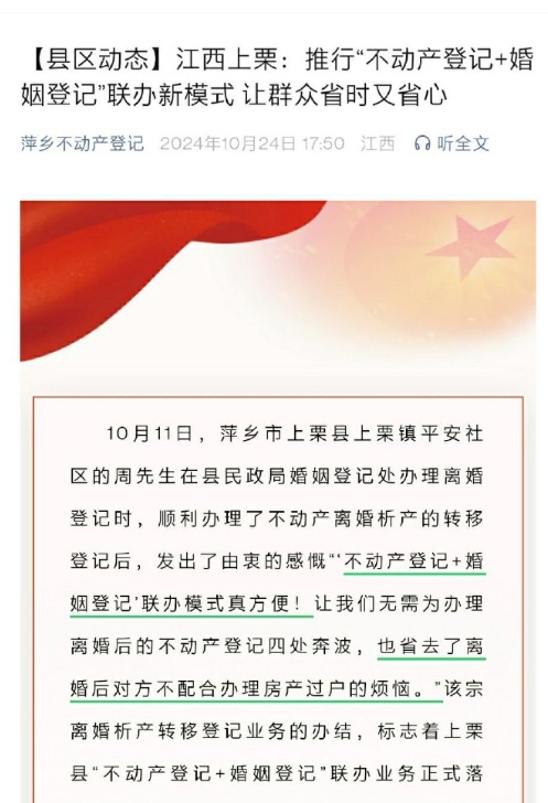 江西一地出生育政策:生三个孩子奖励13000,不得不说,江西在优化营商环境方面一向做得很好,不动产登记+婚姻登记的联办模式,省去了离婚后对方不配合办理房产过户的烦恼。明年开始,江西生育率应该要起飞了。