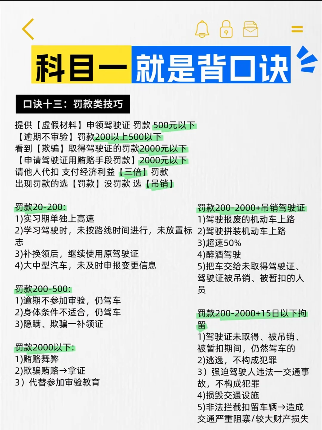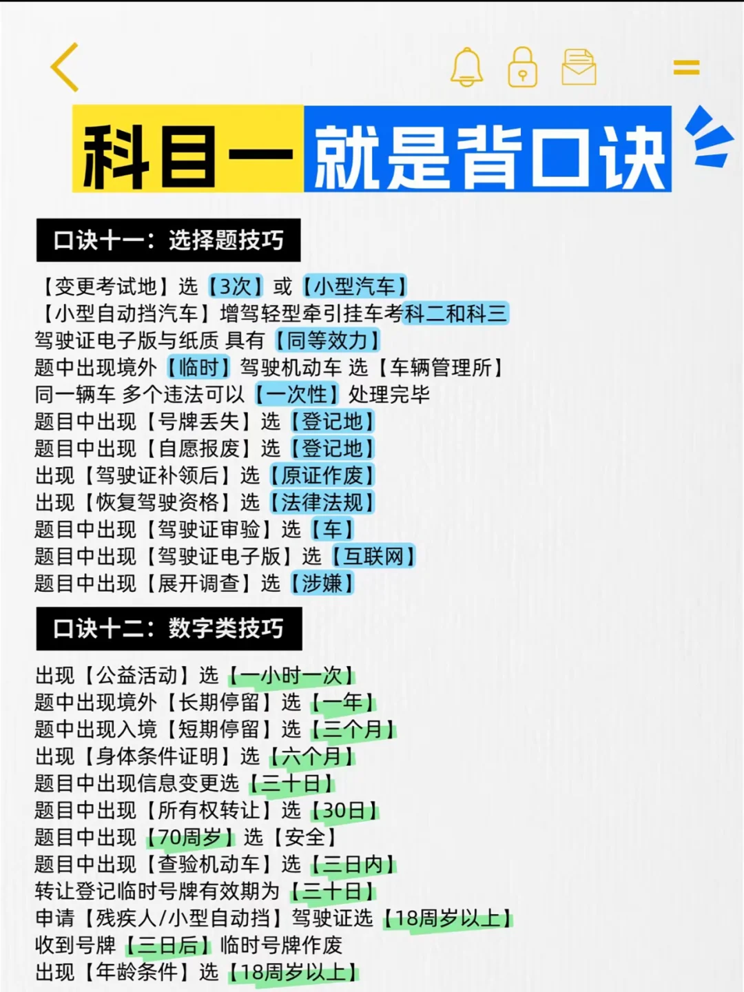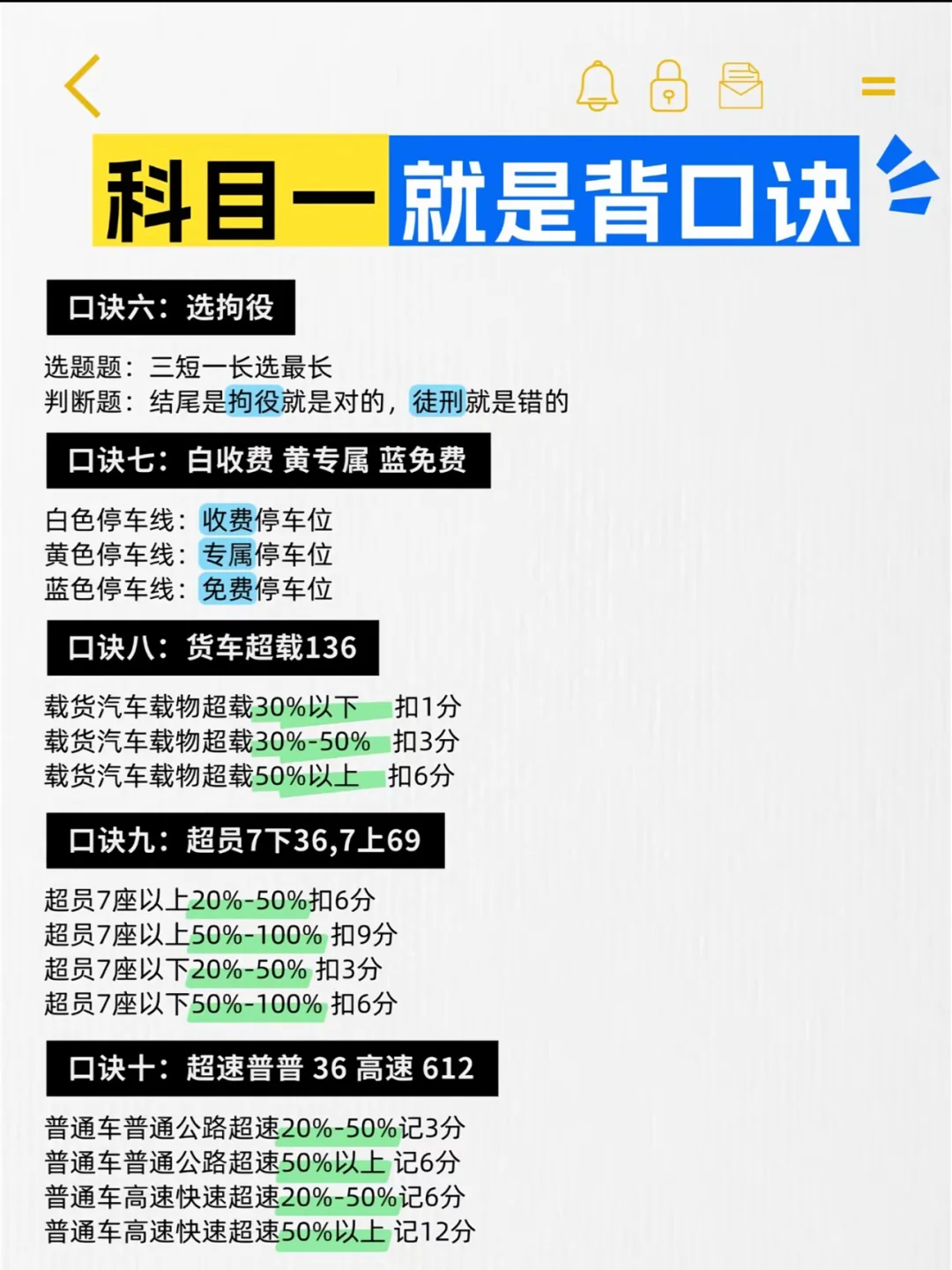 科目一就是背口诀