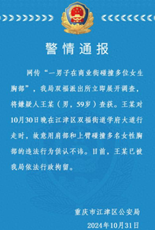 视频中,该男子在人流密集的街道上,多次靠近不同女性,身体特定部位疑似与其胸部发生碰撞。 拍摄者表示,自己也是受害者之一。