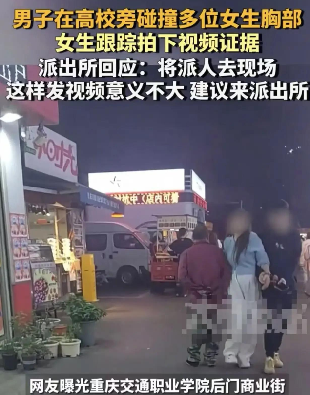 高校旁惊现“咸猪手”!10月31日,重庆某高校附近,一男子被拍到疑似故意碰撞多名女性胸部。被骚扰女性一路跟踪拍摄取证,并将视频上传网络曝光。