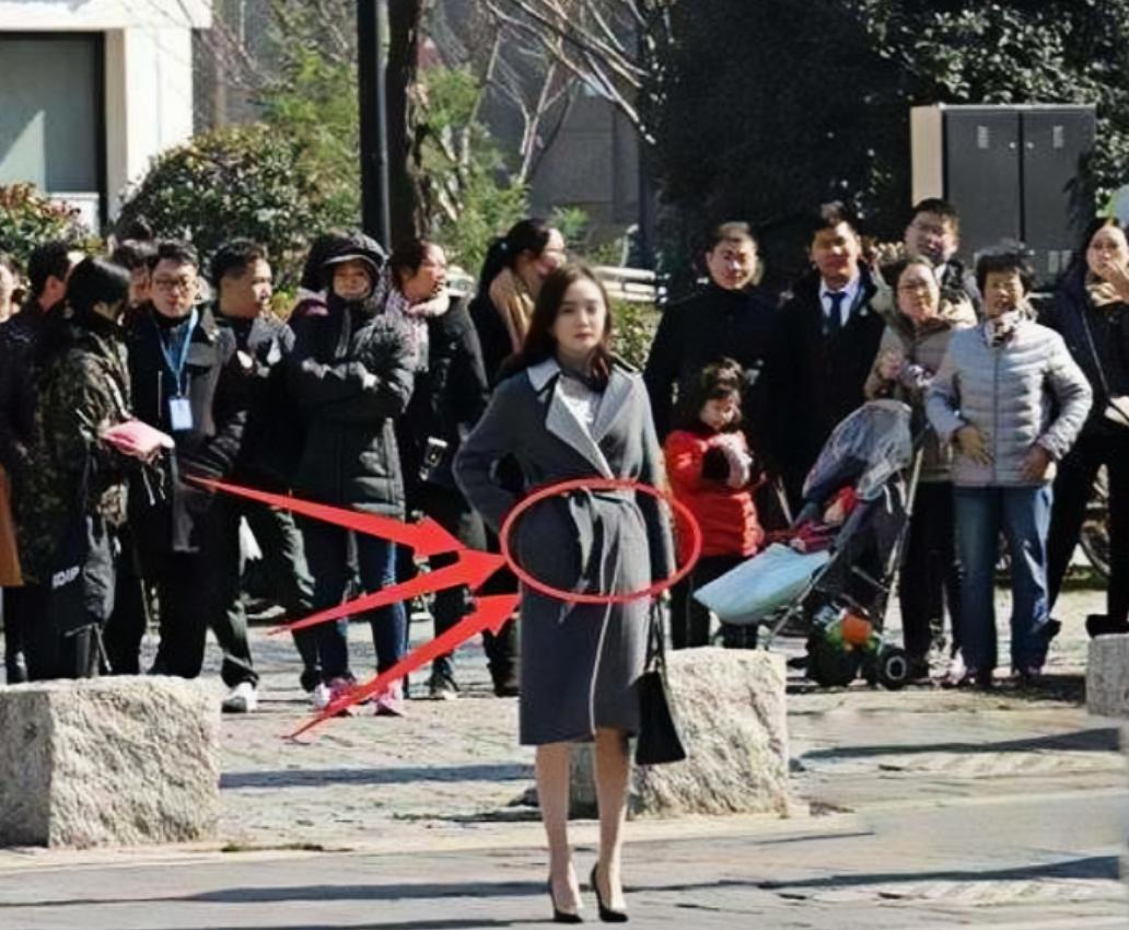 杨幂当年怀孕大肚子的照片,肚大如箩,脸部肿胀,还在片场工作,也是不容易。