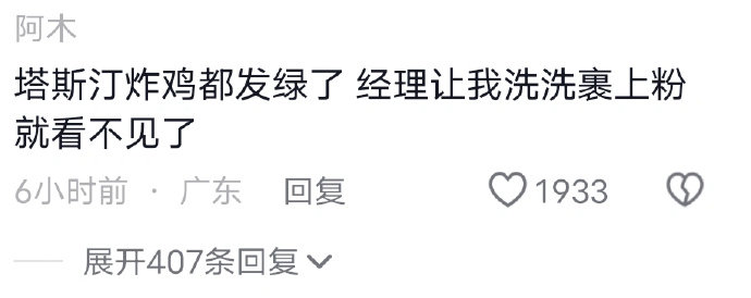 塔斯汀炸鸡都发绿了,经理让我洗洗裹上粉就看不见了