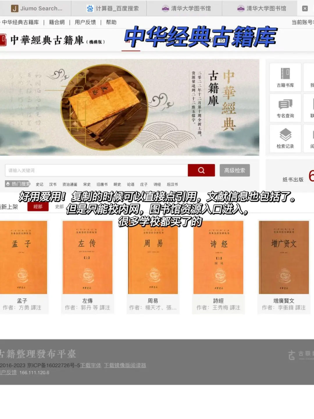 🌱4. 中华经典古籍库(有页码,引用参考文献格式)(需要学校IP)