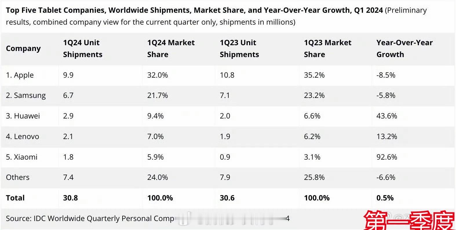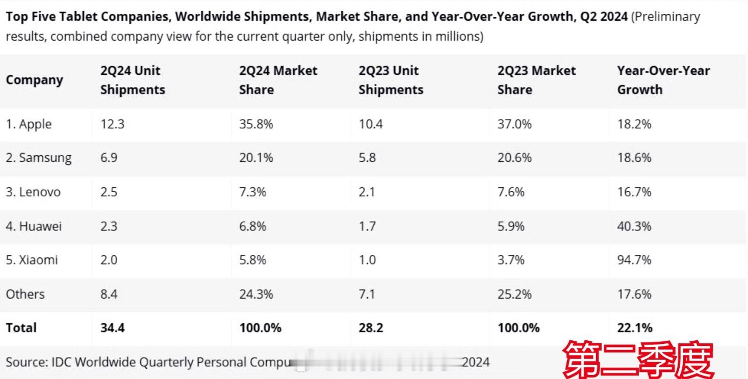 苹果还是第一,可惜小米平板这次掉下去了,第一二季度还都在[开学季],亚马逊重回榜单