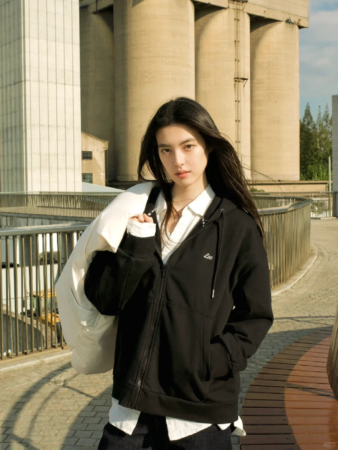搭配Lee黑色卫衣+Lee越冷越酷系列422温暖羊毛牛仔裤