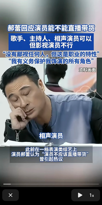 我觉得郝蕾老师说的真诚 ,本来就是要么直播要么做演员,工作性质在镜头前全是各种人物的职业演员,我觉得都不太适合带货,这样真的会增加观众的审美疲劳,这样想重塑银幕角色真的很难,我自己就有这种感觉,当我看到马可,贾乃亮,张檬,舒畅,我每次看到他们的戏就想到了321上链接!