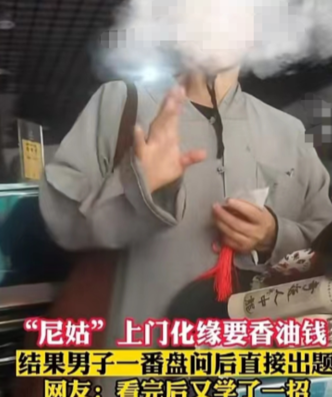 “原形毕露了吧!”2023年,一名尼姑到男子家化缘,想要男子出一点钱买个福报。谁