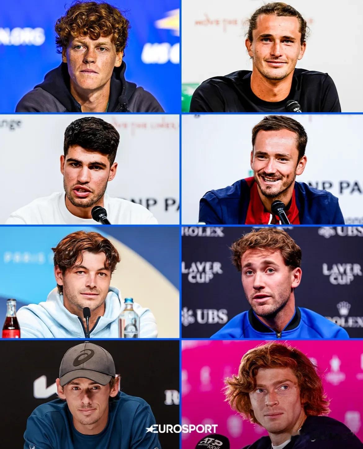 #ATP年终总决赛# 8强合照。 梅德韦杰夫,辛纳,兹维列夫站成Wi-Fi信号图