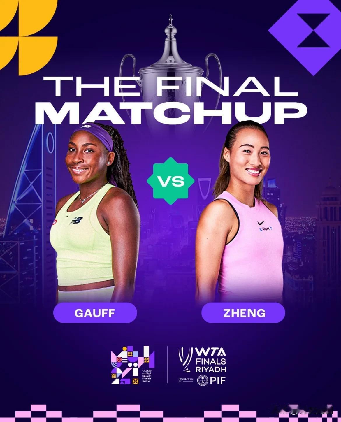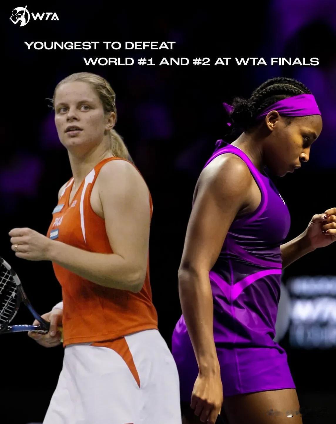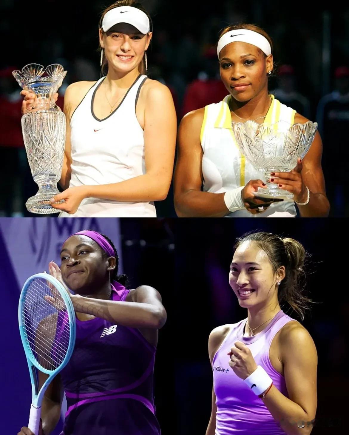 决赛郑钦文打高芙 #2024利雅得WTA年终总决赛# 另一场半决赛,经过激烈的厮杀,高芙以7:6,6:3击败萨巴伦卡,与郑钦文会师决赛。 中美大战,收视率保证,WTA乐开了花。 20岁的高芙,此次创造了多项记录,在WTA年终总决赛中击败世界排名第1和第2最年轻的选手,自2010年以来进入年终总决赛最年轻的选手,20岁的高芙和22岁的郑钦文,也是自2004年自小威和莎娃那届年终总决赛以来最年轻的一对决赛选手。那年的年终赛冠军是17岁的俄罗斯美少女莎娃。