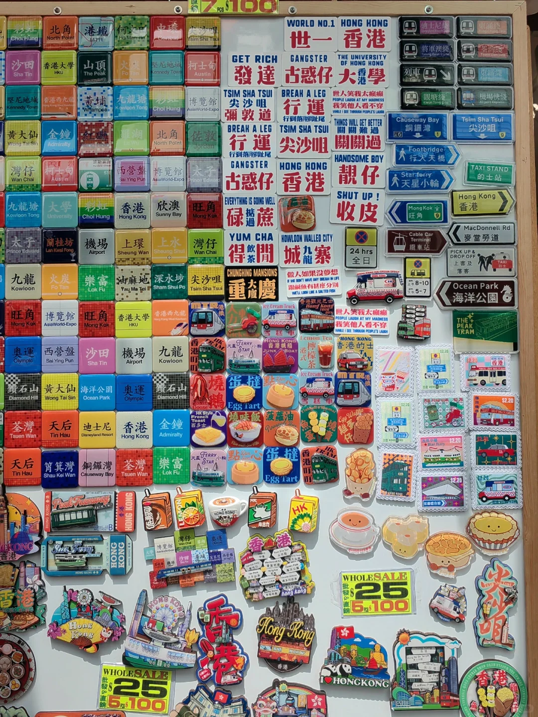 [清单R]离开香港前一定要来这家店逛逛!港味十足的冰箱贴,当纪念品再合适不过了!款式太多!容易挑花眼啊‼️朋友给带的地铁站牌、交通工具还有丝袜奶茶🧋好美味~💰价格:25HKD/个;100/5个;100/7个 🎁锦绣唐朝(重庆大厦对面) 📍地址:尖沙咀弥敦道27-33号良士大厦地下E1号铺 ⏰营业时间:9:00-23:00