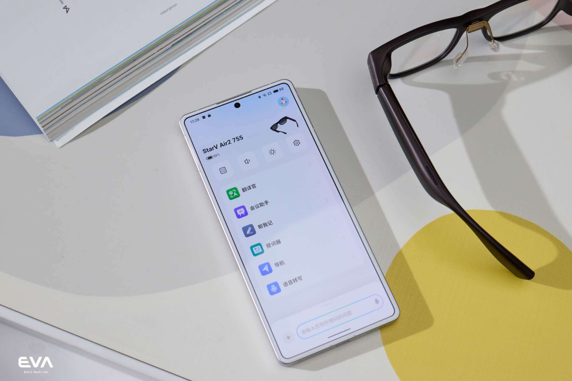 当然还有它的AI功能,平时你可以直接对StarV Air2说出要记住的事情,它就会帮你记录到提醒事项中,在开会时也可以帮你记录下会议内容,不用担心开个小差错过重点,有不懂的问题也可以直接问它,省去拿手机搜索的步骤。