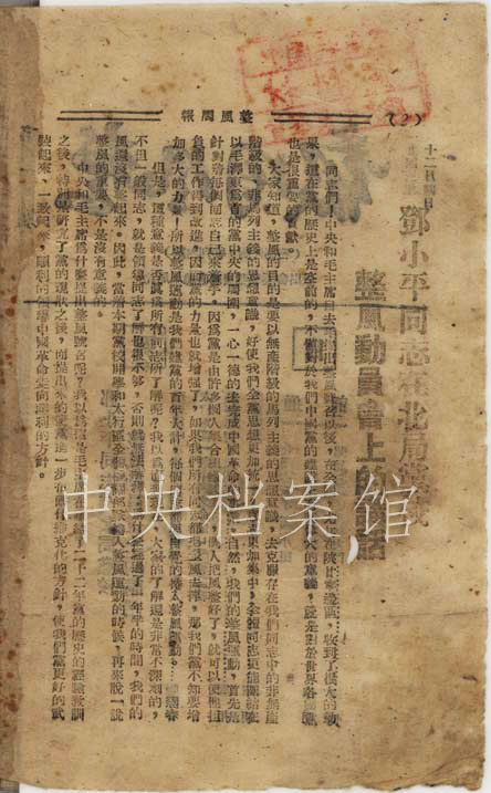 1943年1 1 月 1 0 日 邓 小 平 在 中 共 中 央 北 方 局 党 校 第 八 期 开 学 时 作 整 风 动 员 讲 话 , 指 出 :