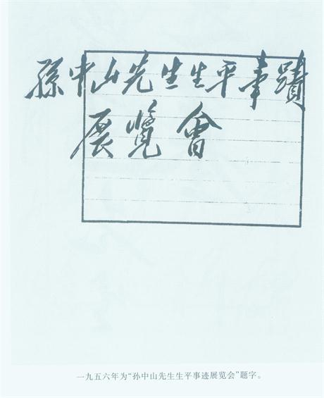 1956年11月11日,为孙中山诞辰九十周年纪念大会题写:“孙中山先生诞辰九十周年纪念大会”