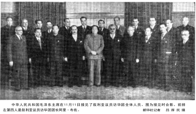 1956年11月11日下午三时半至七时五十分,在政协礼堂先后会见苏联参加孙中山纪念会的代表团、叙利亚议员访华团、西德作家魏森堡、意大利作家马拉巴德、印度国际大学中国学院院长谭云山。 会见时,刘少奇等在座。