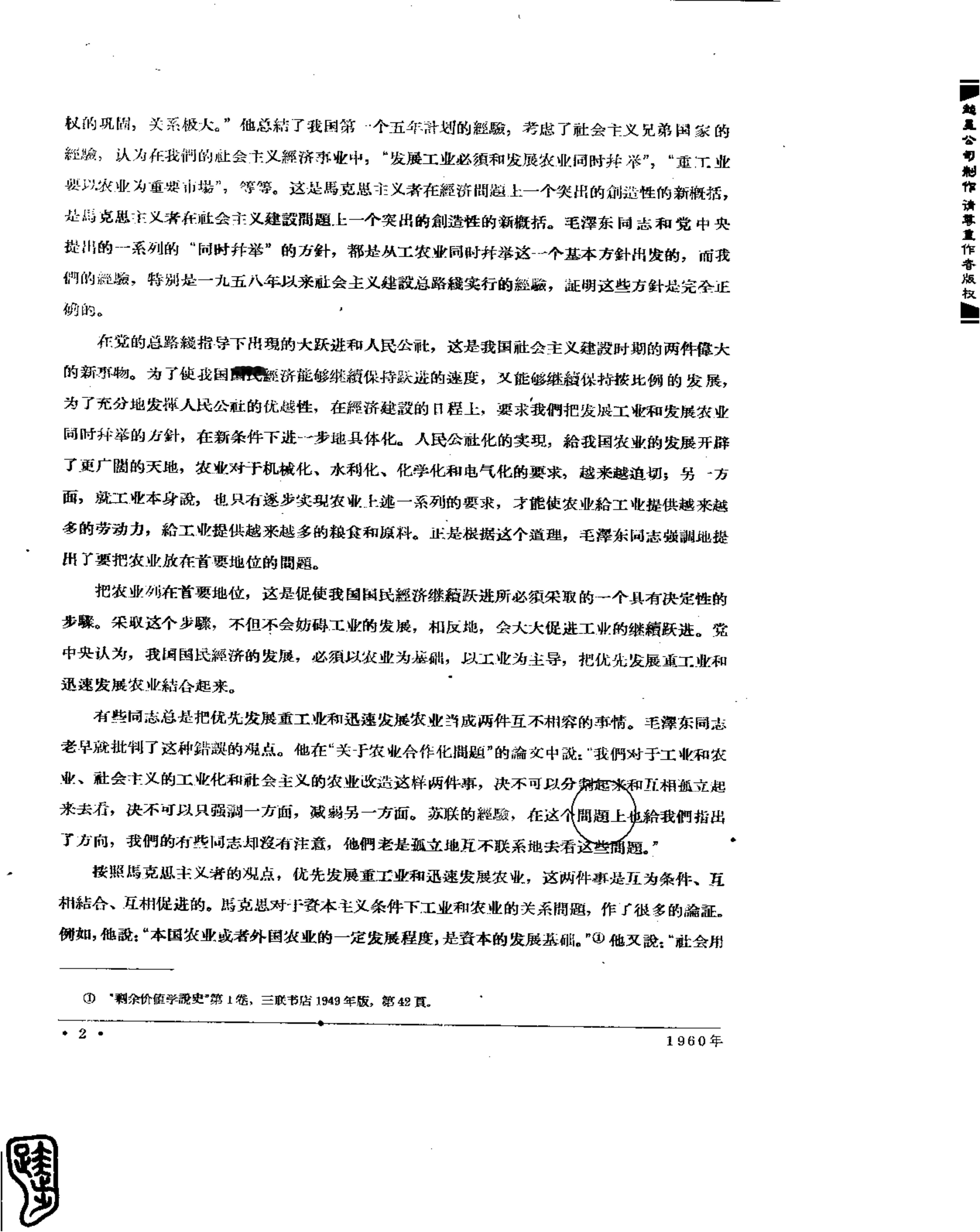 1960年11 月 11 日 阅《红旗》杂志社论稿《工农业并举是我国社会主义经济的一个重要规律》,批示:“退陈伯达同志。此文看过,可用。”