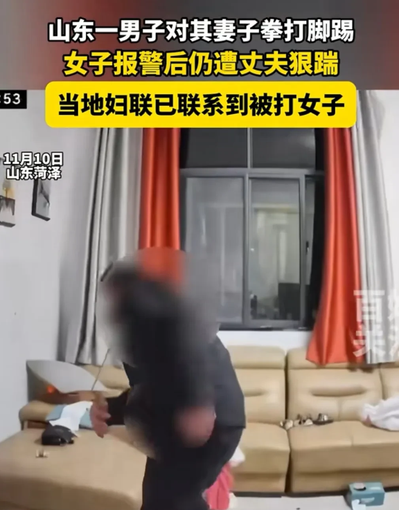 山东菏泽,男子对着妻子的头部拳打脚踢,妻子趁着男子打累休息的时间,就赶紧报了警,却不料,丈夫又来对着她的头拳打脚踢,即使老人过来拉了拉他的肩膀,男子依然当着孩子的面殴打妻子。网友:结婚就怕碰到这样的男人。