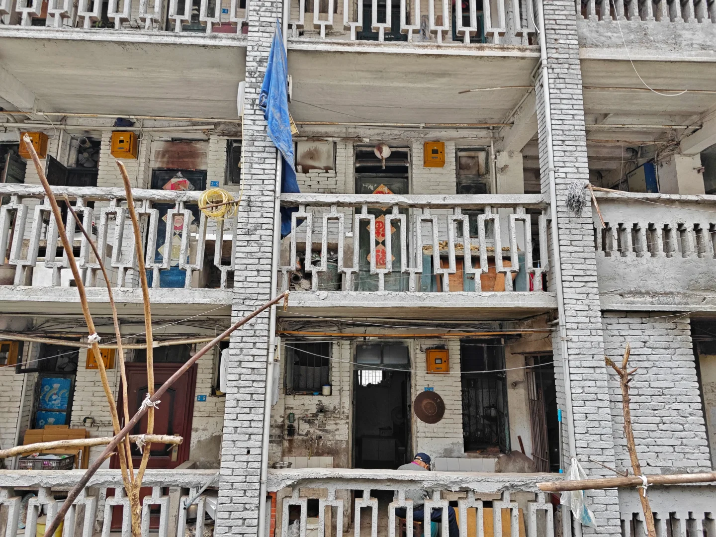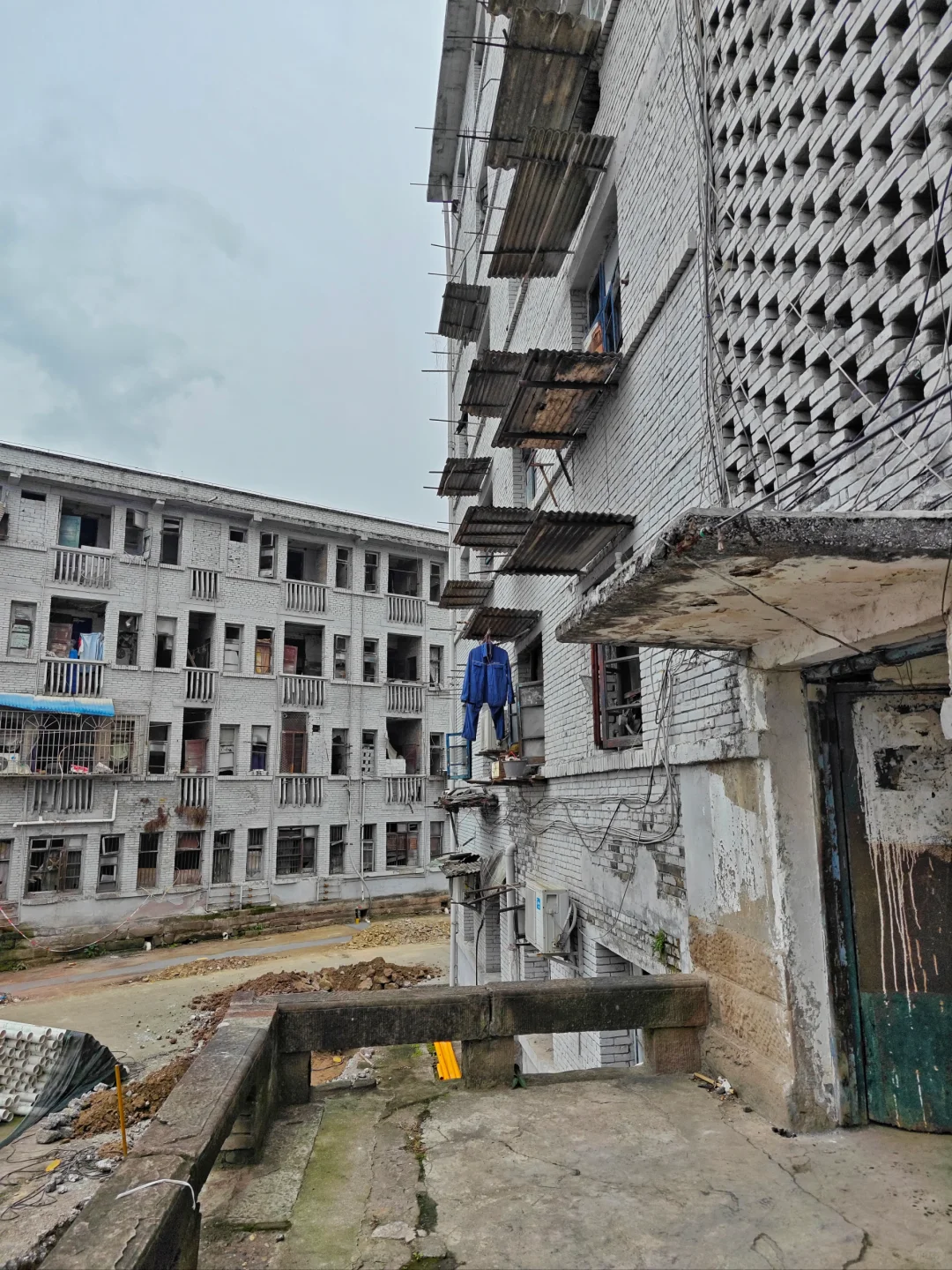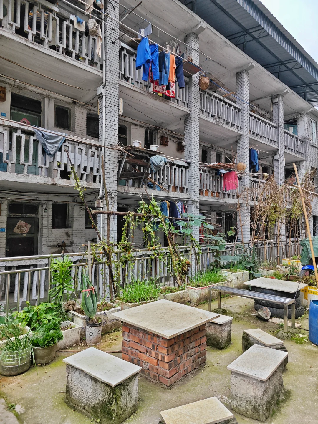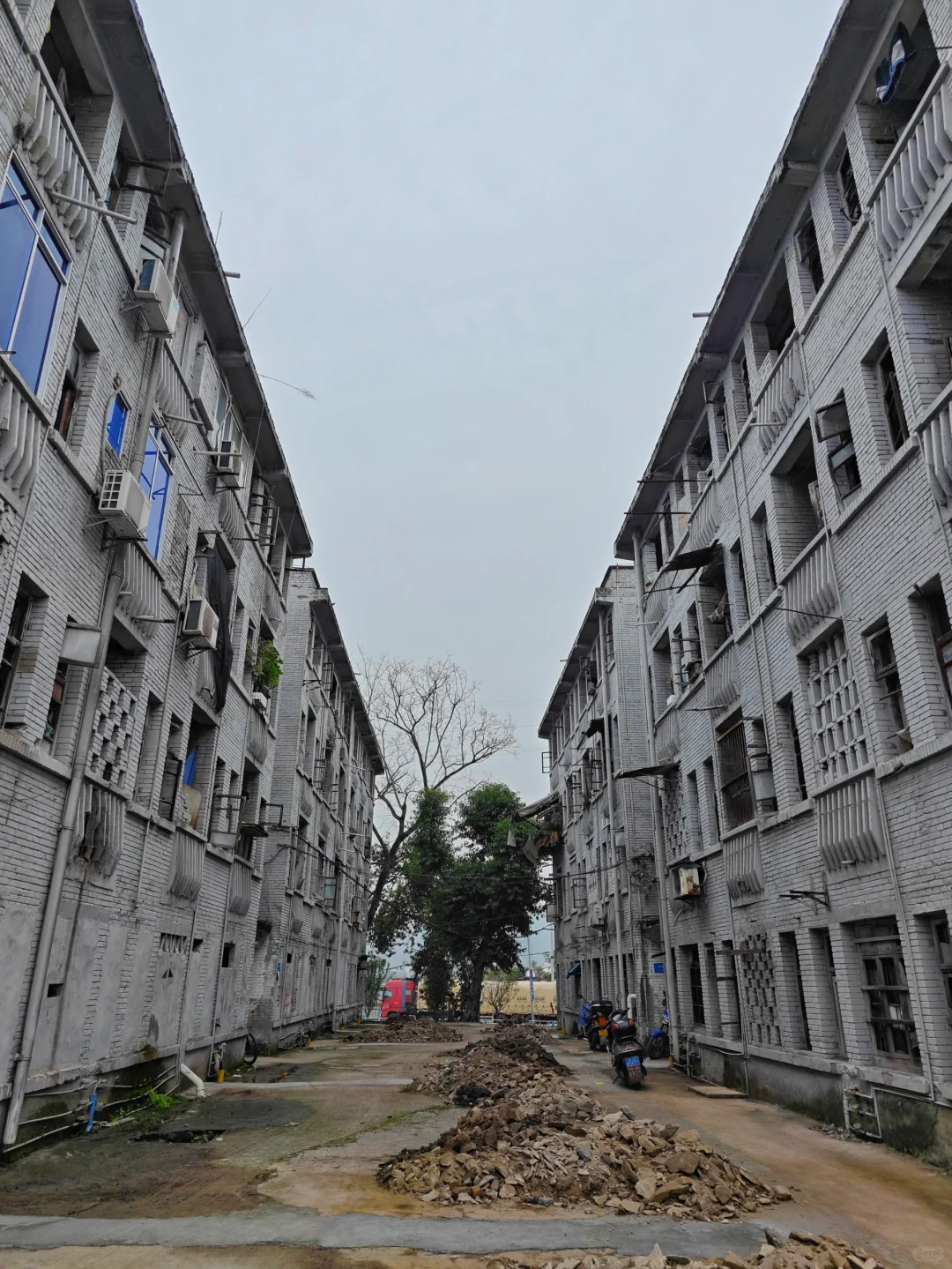 但是新世纪初,川染终于还是垮了,宣告破产,不过也没完全消失,目前被重庆化医集团收购管辖,还有些厂房在生产产品。不过家属区一直在这里,全是青砖老房子,非常结实,外墙看起来就很有年代感,即使经过粉刷。家属楼虽然是很长的筒子楼。但看起来一点也不脏乱。几乎都住了人。虽然有的楼道里面灯光昏暗,但有几栋楼采光还是不错。里面住的老爷爷告诉当年川染的故事,义愤填膺的觉得是厂里那些corrupt leaders把厂搞垮的。这和我在很多破产的国企老厂家属区里面听到的说法相似。当然真实与否有待考证,不过这是一个很有趣的现象。