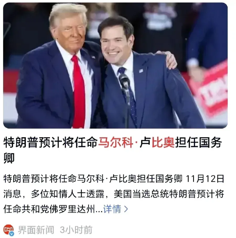 1. 特朗普这一招,真是让人眼镜掉地上。任命鲁比奥,这不是火上浇油吗?这位老兄,反华立场可是出了名的。