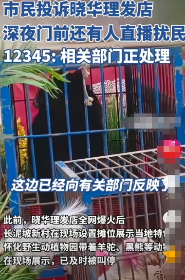 晓华理发店的门口被人投诉了,电话打到12345,深夜直播噪音扰民,已交给相关部门去处理,昨天晓华还给楼上的,住户道歉了呢。