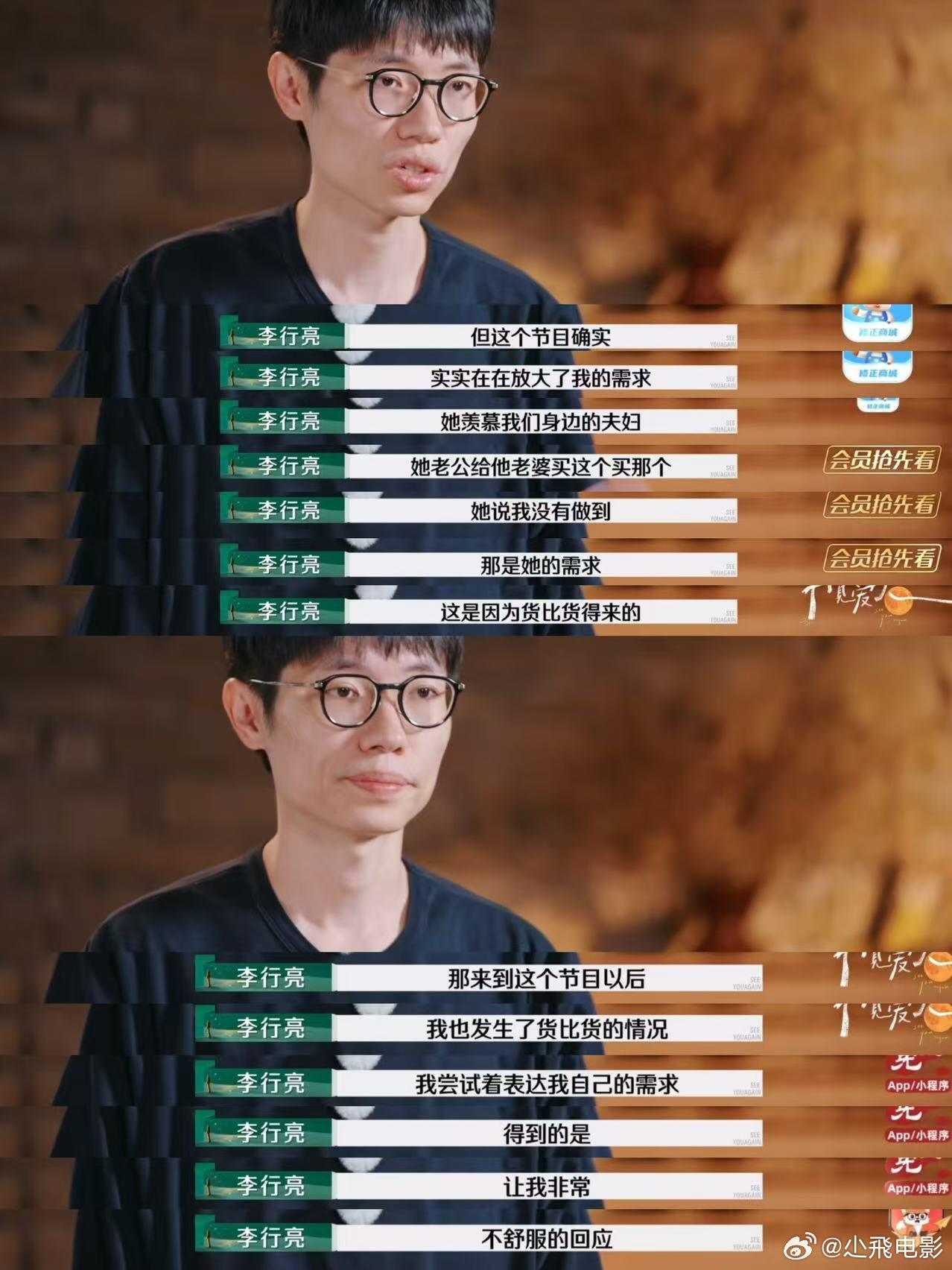 备采时李行亮说:“来到这个节目后,我也发生了货比货的情况,我尝试着表达自己的需求,得到的是,让我不舒服的回应。”