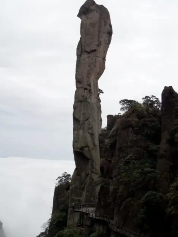 要知道,三清山以其壮丽的自然景观闻名于世,其中巨蟒峰更是坐落在海拔1200米的深山之中,光是地理位置,就让人毛骨悚然。更令人恐惧的是,资料显示,巨蟒峰实际上是一块完整的花岗岩岩柱,它顶部扁平,颈部稍细,最细处直径仅有7米,整体垂直高度128米,形似一硕大蟒蛇破山而出,直欲腾空而去。